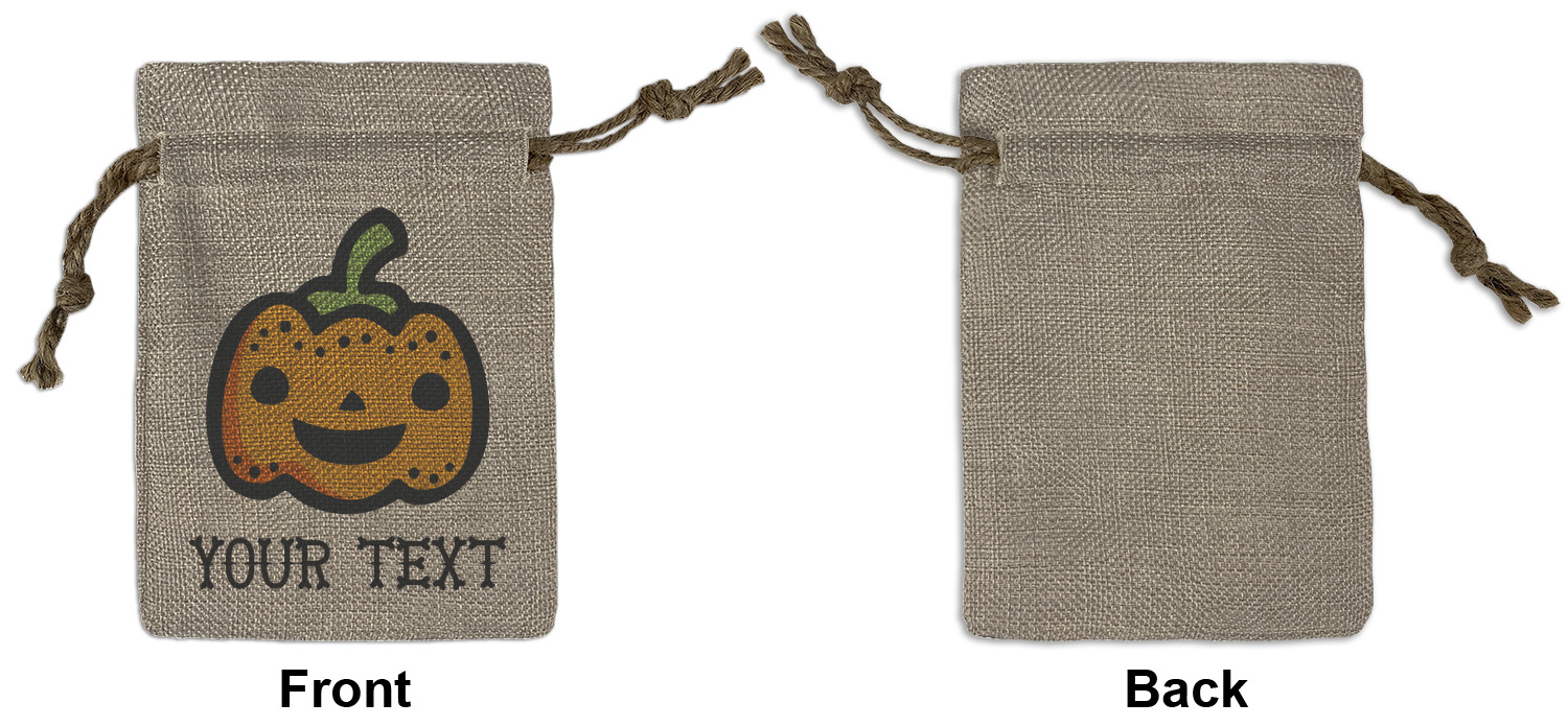 We sell our Burlap Gift Bags in 3 variant sized bags. Made with burlap polyester, each personalized bag can be secured with a twine drawstring pull. Your custom design is available to print on one side or both sides - completely up to you! The sizes of the bags measure approximately 4.5" x 6.5" for the smallest size, 6.5" x 8.0" for the medium size, and 6.5" x 13.5" for the large-sized bag.