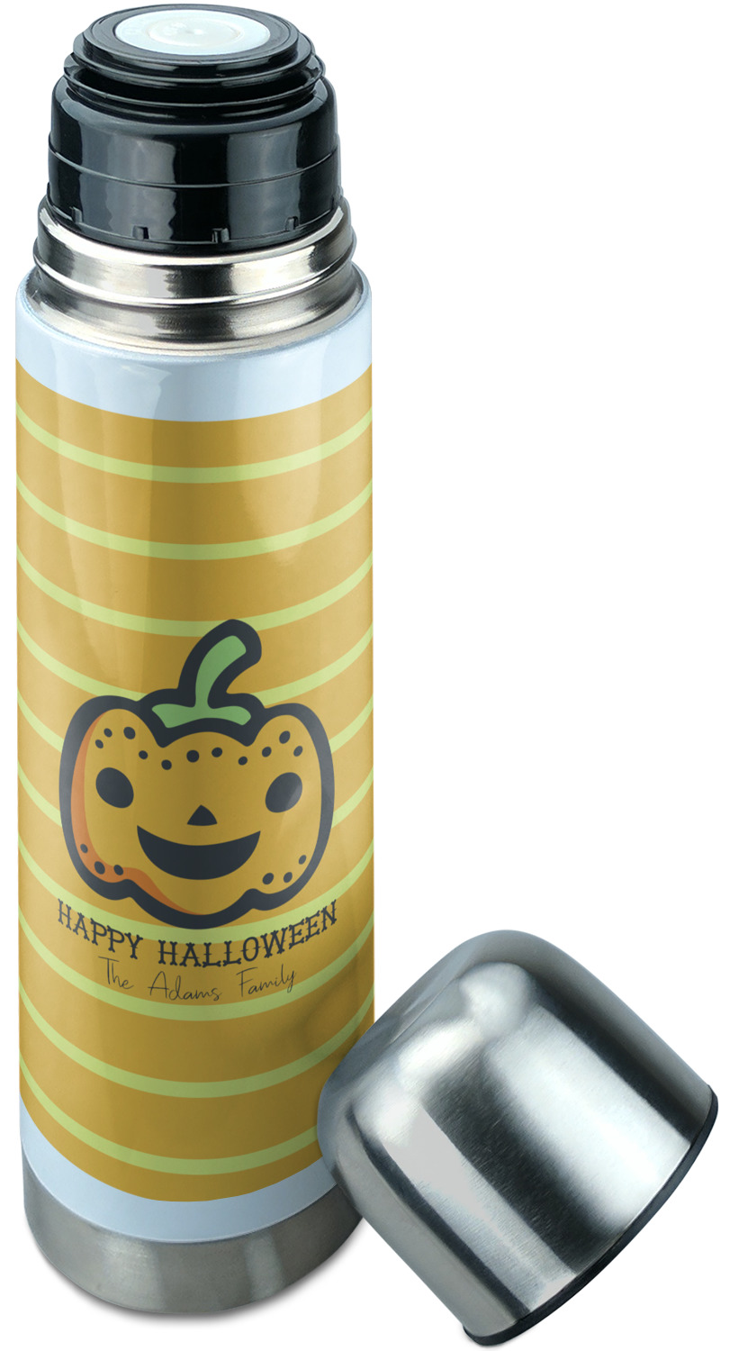 Manufactured from stainless steel, this thermos is built durably and double-walled insulated to preserve the temperature of your drink for hours. It also features a screw off lid that is made to also function as a small cup. Upon unscrewing this part of the thermos bottle, a pop-open, pour feature emerges. This feature allows you to slowly pour your beverage into your lid, ensuring a steady, controlled pour into your lid or other cup. With a capacity of 25 ounces, these large thermoses can hold several servings of your favorite beverage. Your customization is displayed all around the bottle with bright, vibrant color.