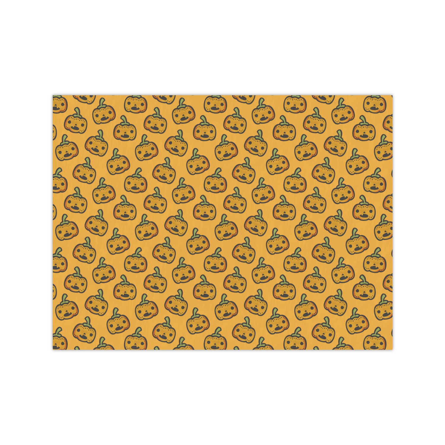 The design features a fun-loving pumpkin as the main focus. He even has a cute little smile on his face that will make you smile right back. The background is a subtle striped one with yellow and orange as the colors. Your personalization or greeting goes directly underneath your pumpkin friend. The coordinating design even has a cute little ghost who thinks that you are "bootiful" and "spooktacular."