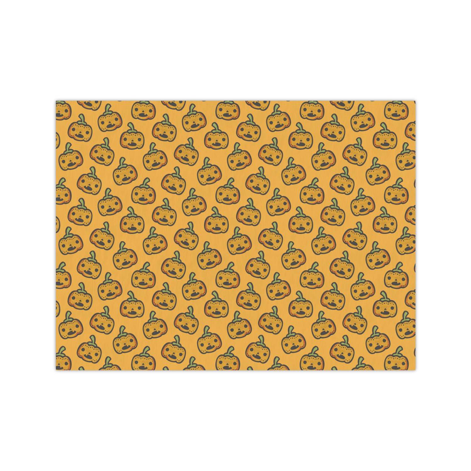 The design features a fun-loving pumpkin as the main focus. He even has a cute little smile on his face that will make you smile right back. The background is a subtle striped one with yellow and orange as the colors. Your personalization or greeting goes directly underneath your pumpkin friend. The coordinating design even has a cute little ghost who thinks that you are "bootiful" and "spooktacular."
