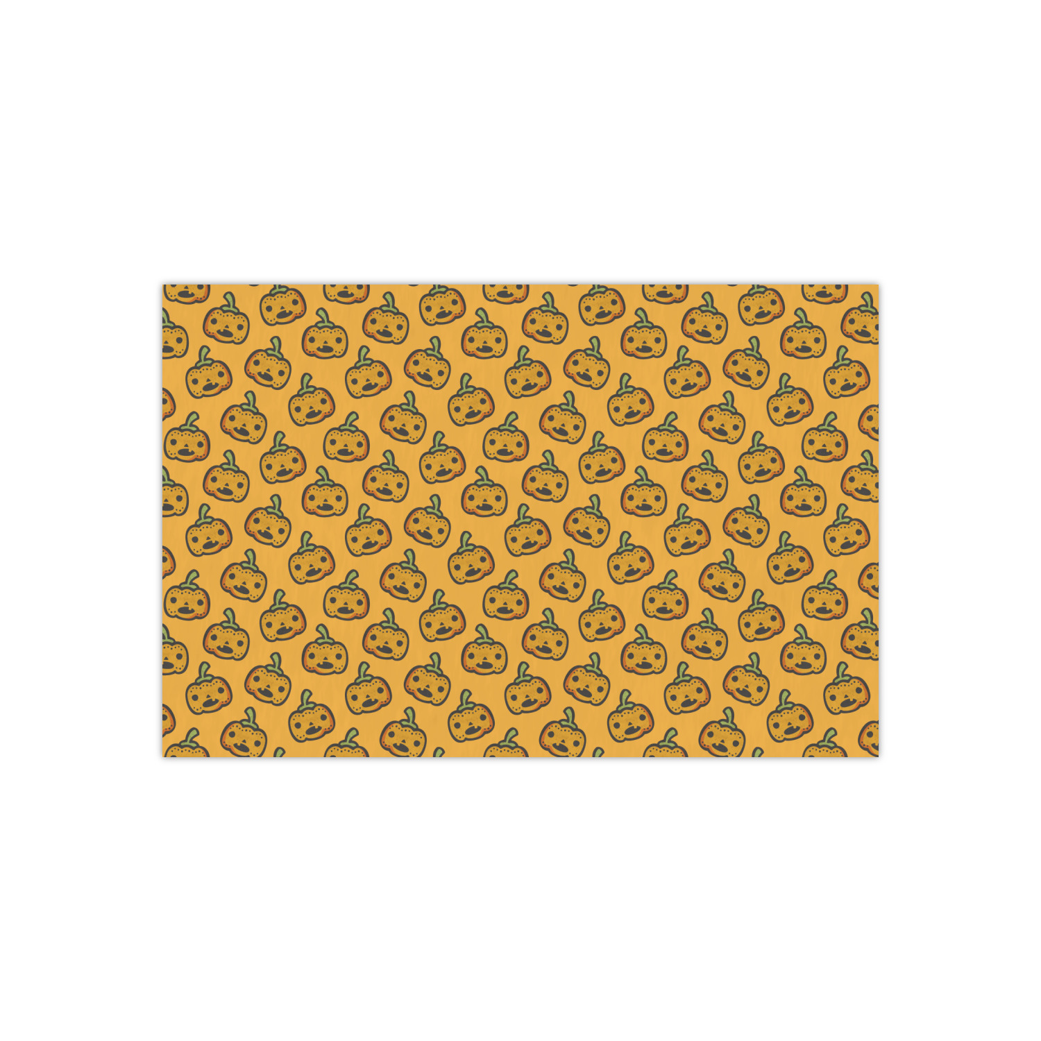 The design features a fun-loving pumpkin as the main focus. He even has a cute little smile on his face that will make you smile right back. The background is a subtle striped one with yellow and orange as the colors. Your personalization or greeting goes directly underneath your pumpkin friend. The coordinating design even has a cute little ghost who thinks that you are "bootiful" and "spooktacular."