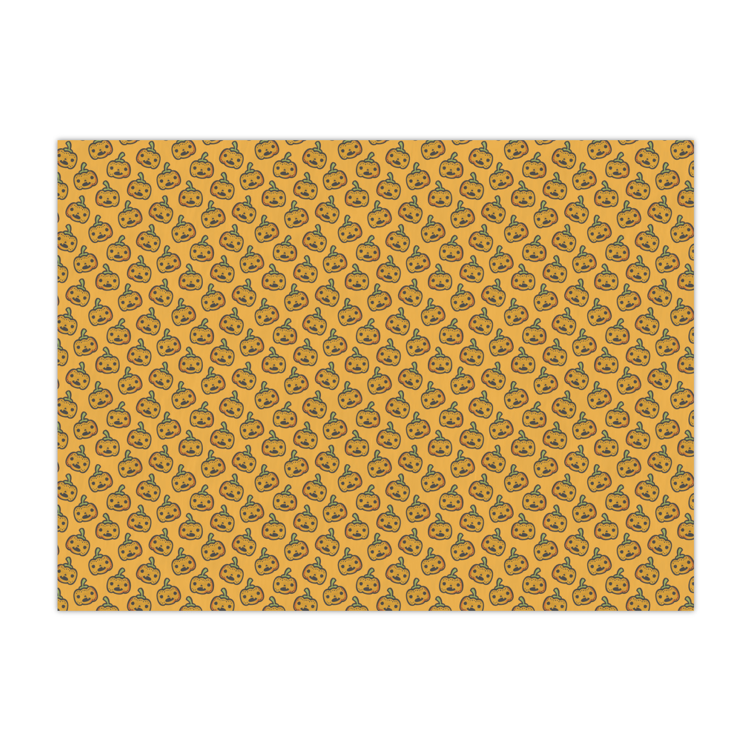 The design features a fun-loving pumpkin as the main focus. He even has a cute little smile on his face that will make you smile right back. The background is a subtle striped one with yellow and orange as the colors. Your personalization or greeting goes directly underneath your pumpkin friend. The coordinating design even has a cute little ghost who thinks that you are "bootiful" and "spooktacular."