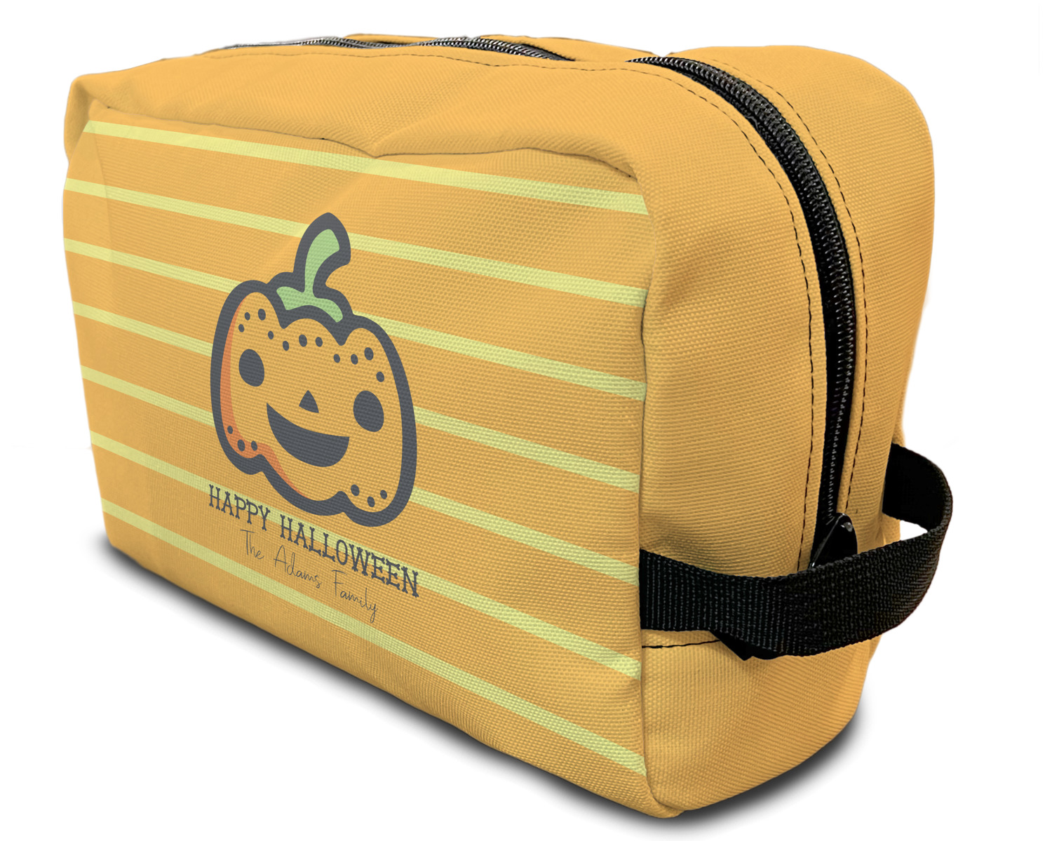 Our toiletry bag has the traditional dopp kit design i.e. a side to side zippered closure, giving you easy access to all the contents inside and a sturdy handle on one side of the bag. The canvas fabric for dopp kits is printed, then cut and sewn here in the USA.