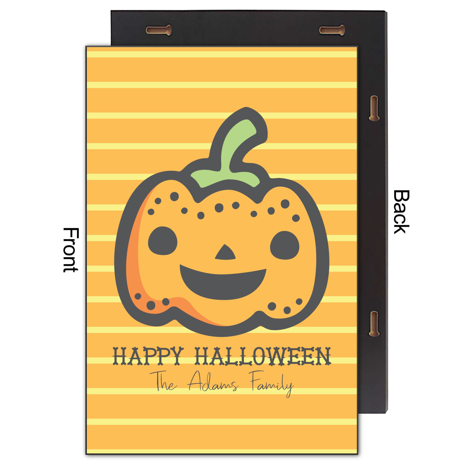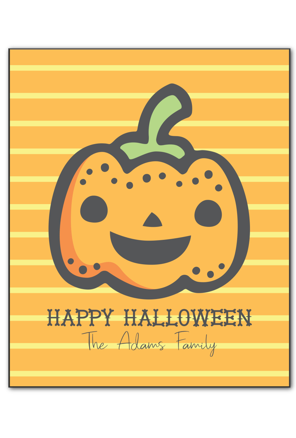 The design features a fun-loving pumpkin as the main focus. He even has a cute little smile on his face that will make you smile right back. The background is a subtle striped one with yellow and orange as the colors. Your personalization or greeting goes directly underneath your pumpkin friend. The coordinating design even has a cute little ghost who thinks that you are "bootiful" and "spooktacular."