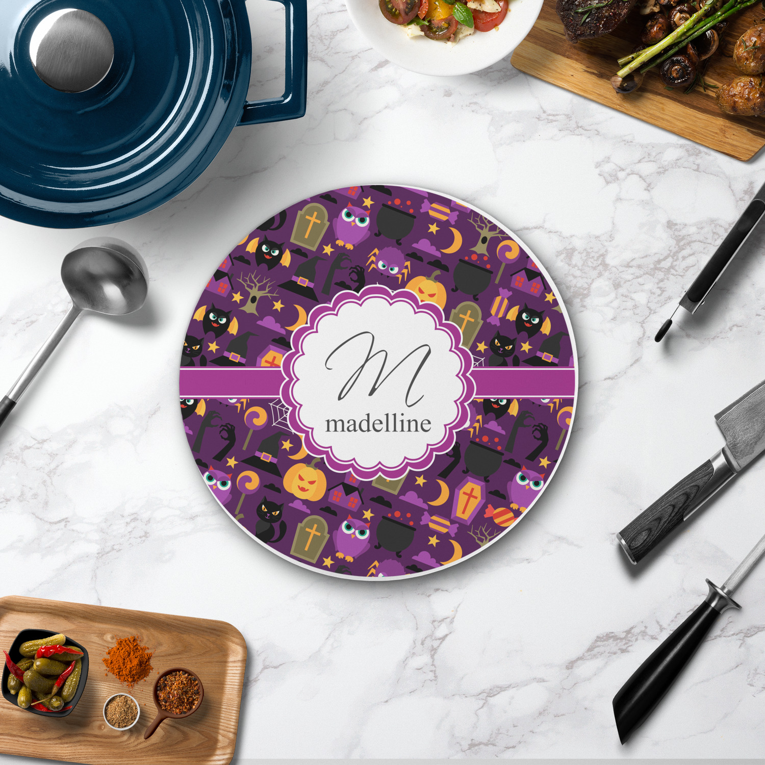 The round trivets can be customized with your own design, your own photo, or your own logo. You can add personalization, like a monogram, family name or initial to your uploaded design / art. You can also customize one of our designs and change the patterns, colors, personalization, fonts etc.