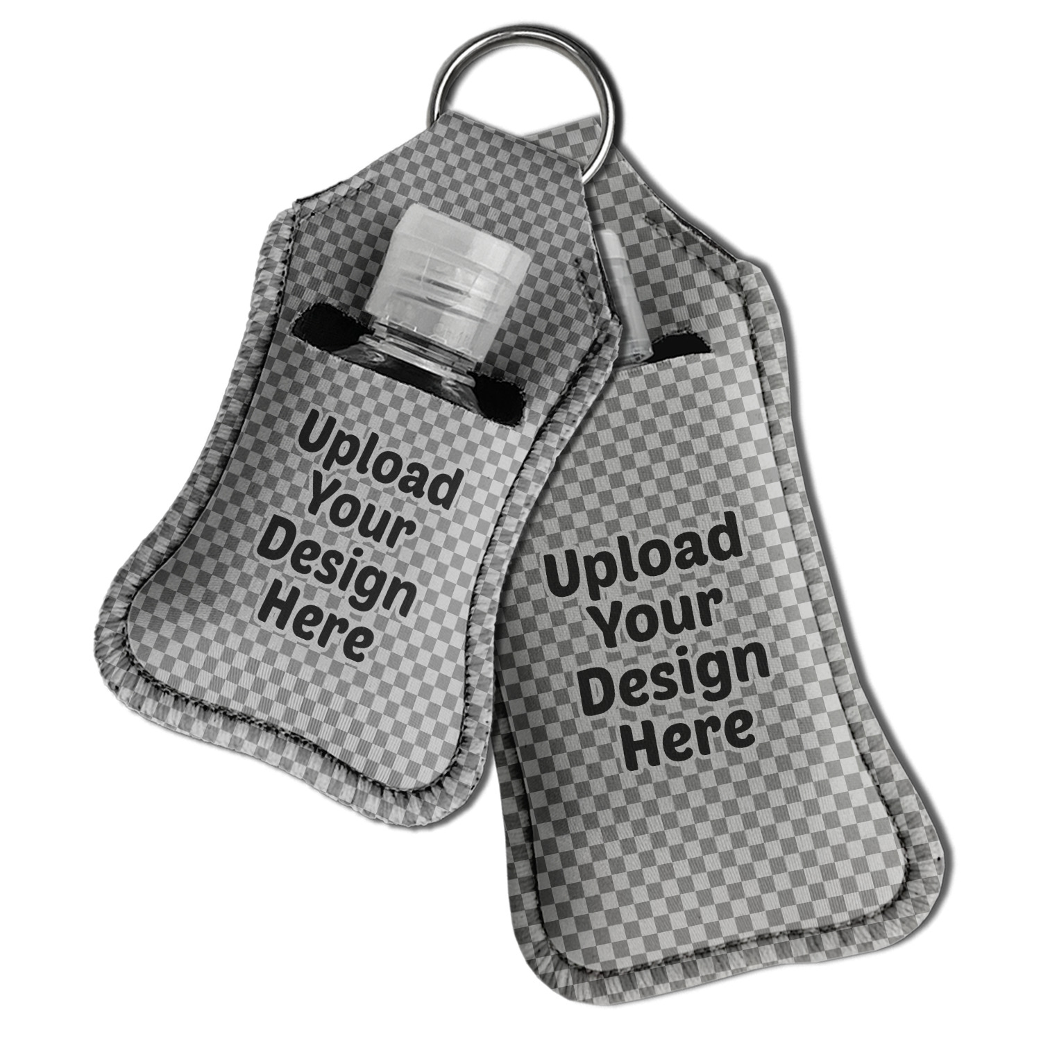 Each hand sanitizer holder comes with its own empty travel-sized, refillable hand sanitizer sure to fit snug in your customized sanitizer case! Our hand sanitizer cases are a durable, yet soft neoprene material sure to last any daily activities or travel agenda. Customize and personalize a hand sanitizer bottle holder with one of our two sizes - small (4.25" x 2.25") or large (5.5" x 2.5"). Each travel sanitizer holder comes with a keyring for attachment on bags, keys, or more!