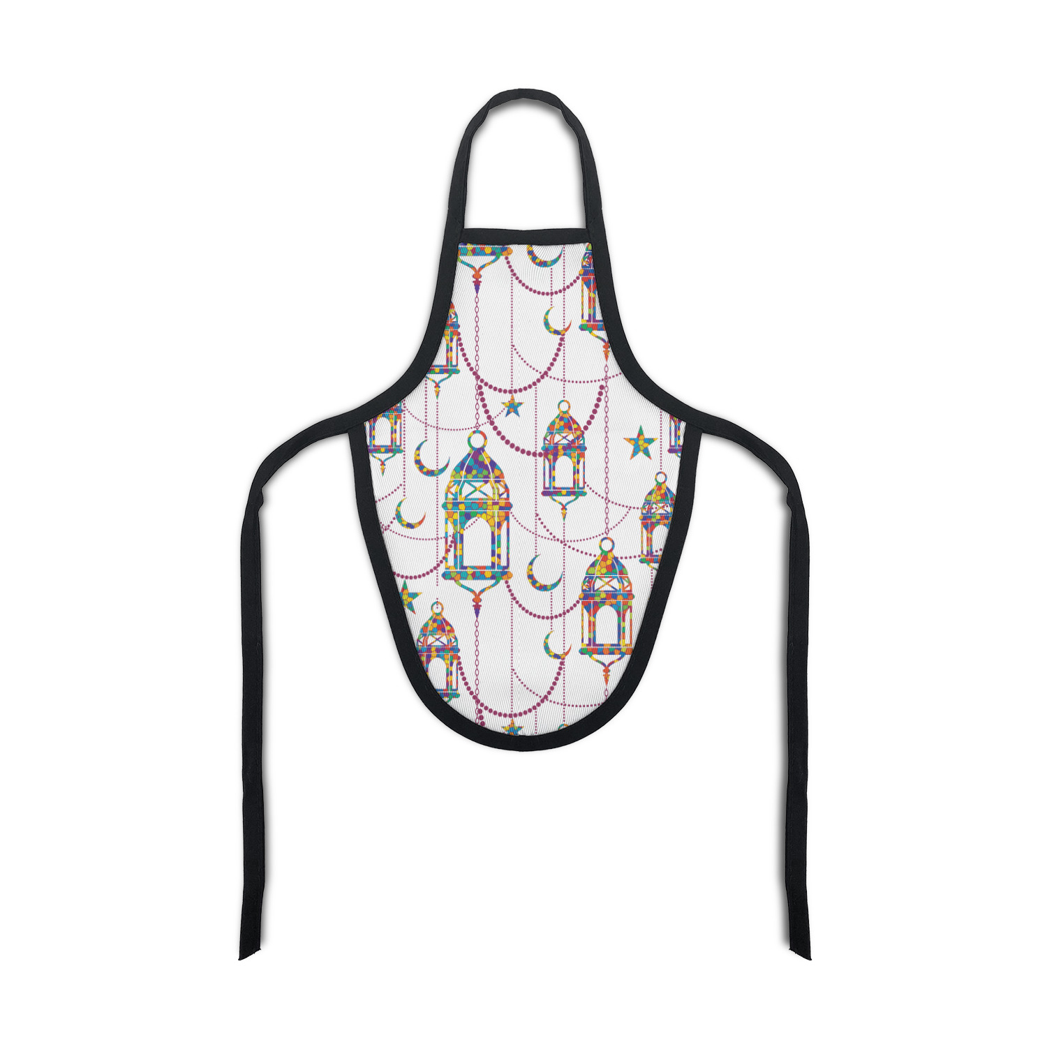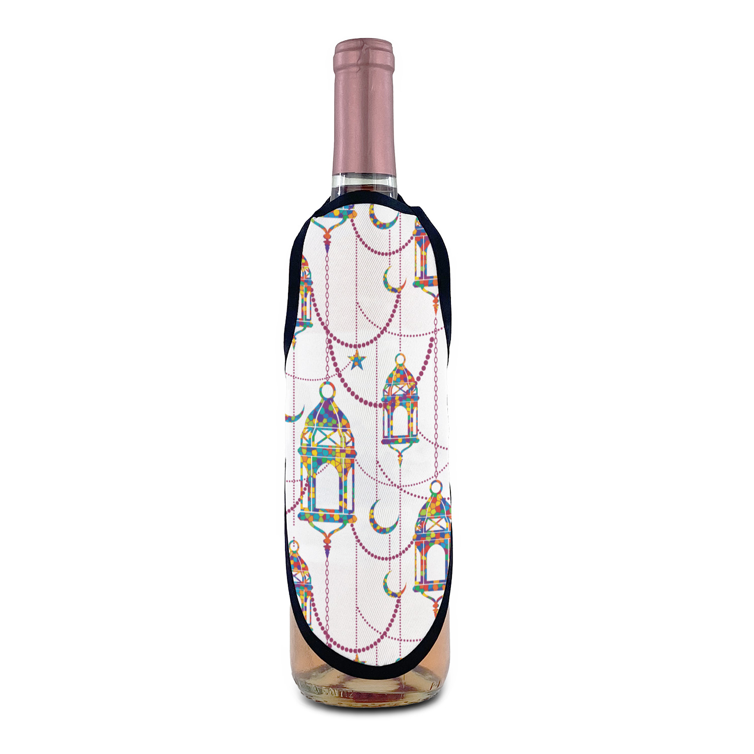 The design consists of brightly colored mosaic style lanterns with stars and moons hanging like chandeliers from chains. You'll find all sorts of colors including blue, green, yellow, and purple. We chose not to personalize the main design, however the default layout has your personalization at the bottom.