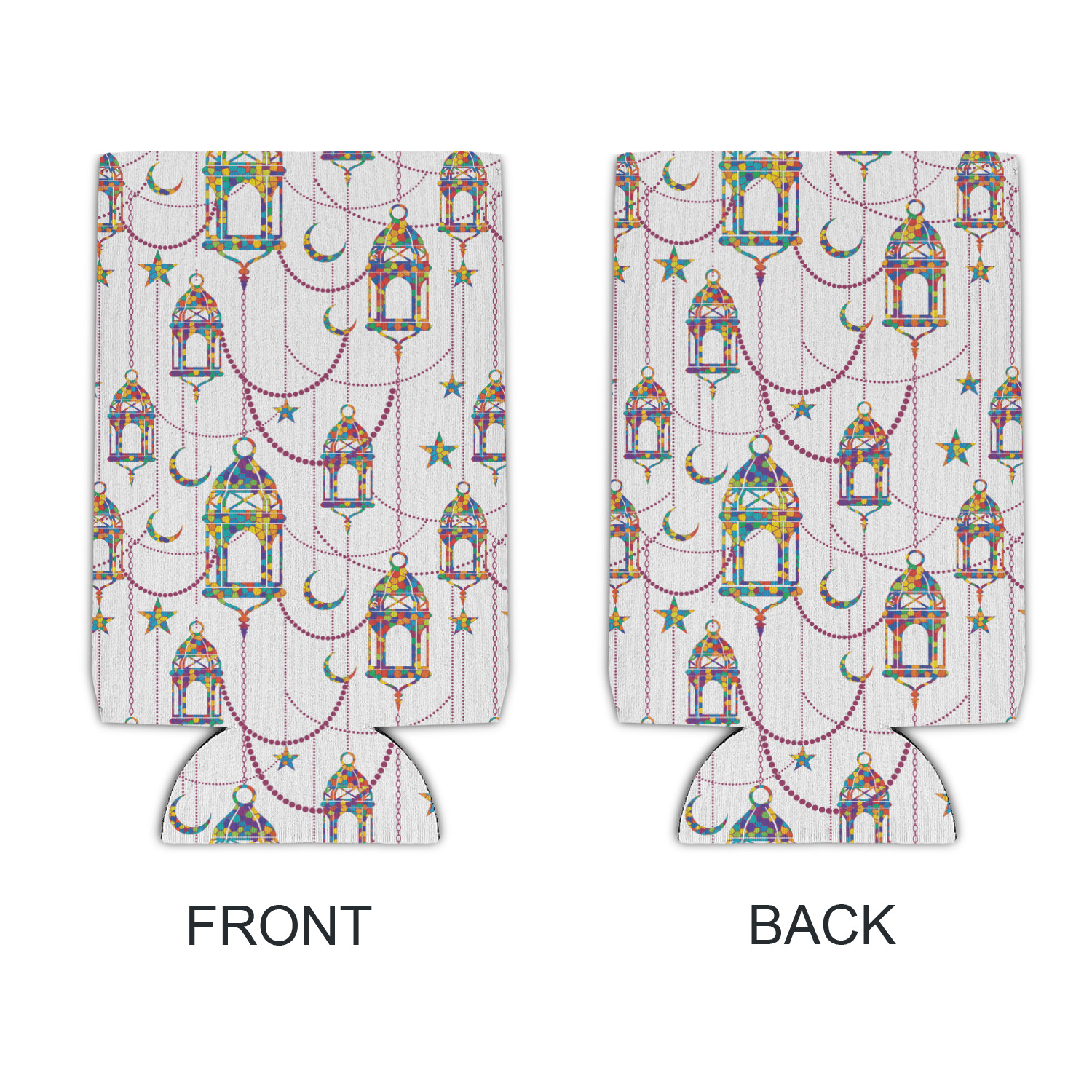 The design consists of brightly colored mosaic style lanterns with stars and moons hanging like chandeliers from chains. You'll find all sorts of colors including blue, green, yellow, and purple. We chose not to personalize the main design, however the default layout has your personalization at the bottom.