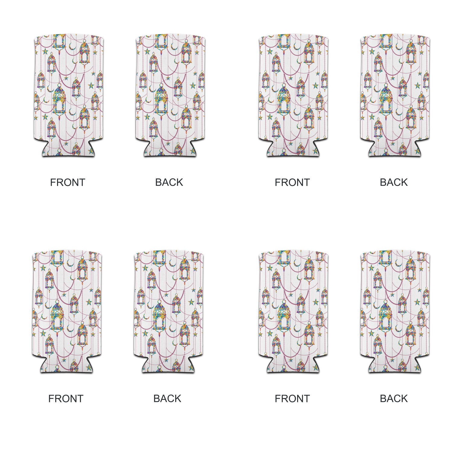 The design consists of brightly colored mosaic style lanterns with stars and moons hanging like chandeliers from chains. You'll find all sorts of colors including blue, green, yellow, and purple. We chose not to personalize the main design, however the default layout has your personalization at the bottom.