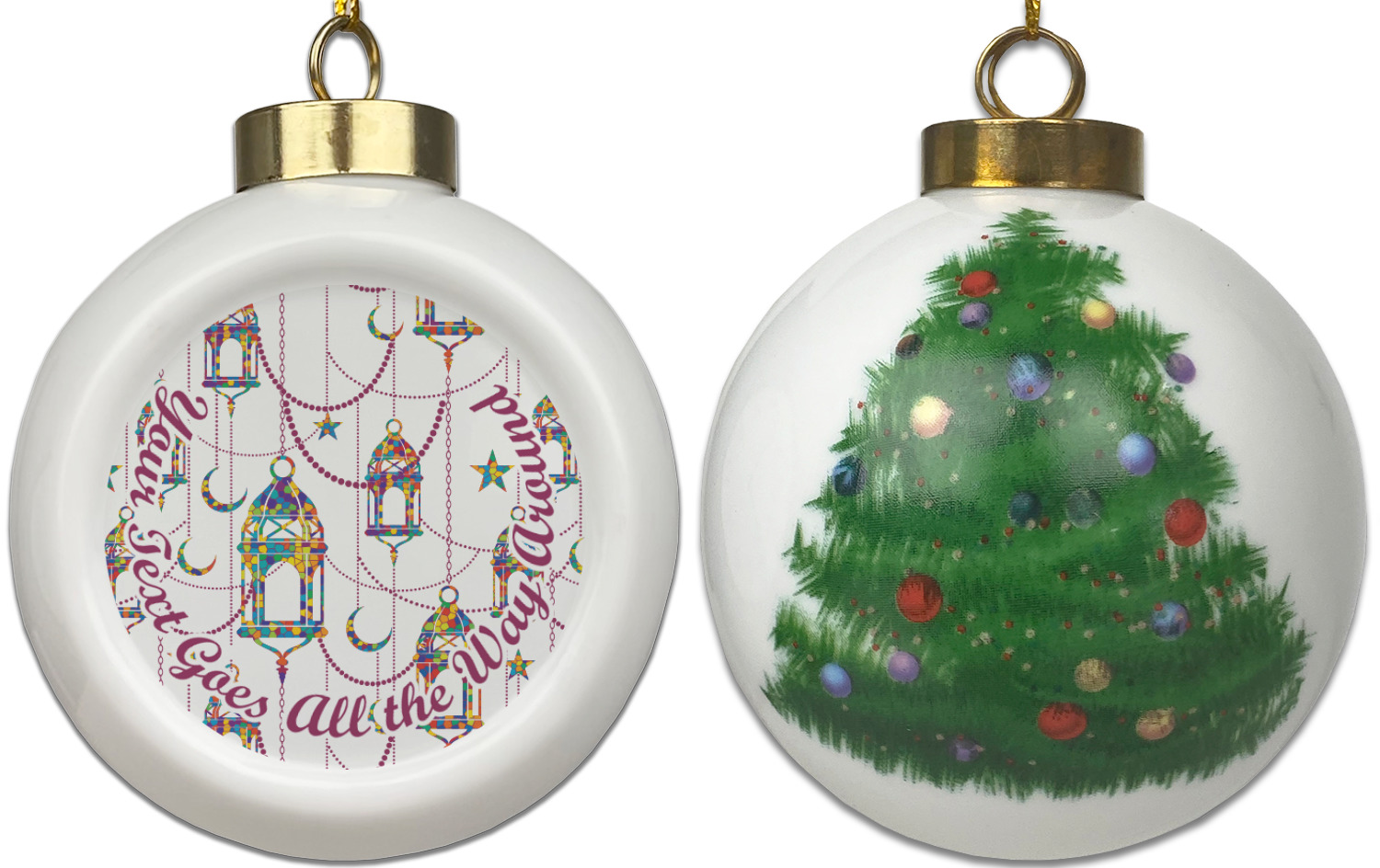 Our Christmas ornaments are a unique ceramic ball shape with a twist as it has a flat face to display your custom design! Select from one of our two design types - Christmas Tree or Poinsettia Garland - to adorn the curved back of your personal design. Each ornament measures 3H x 2.5W x 2D accompanied with a gold string accent for finishing touches to hang on your beautiful Christmas tree!