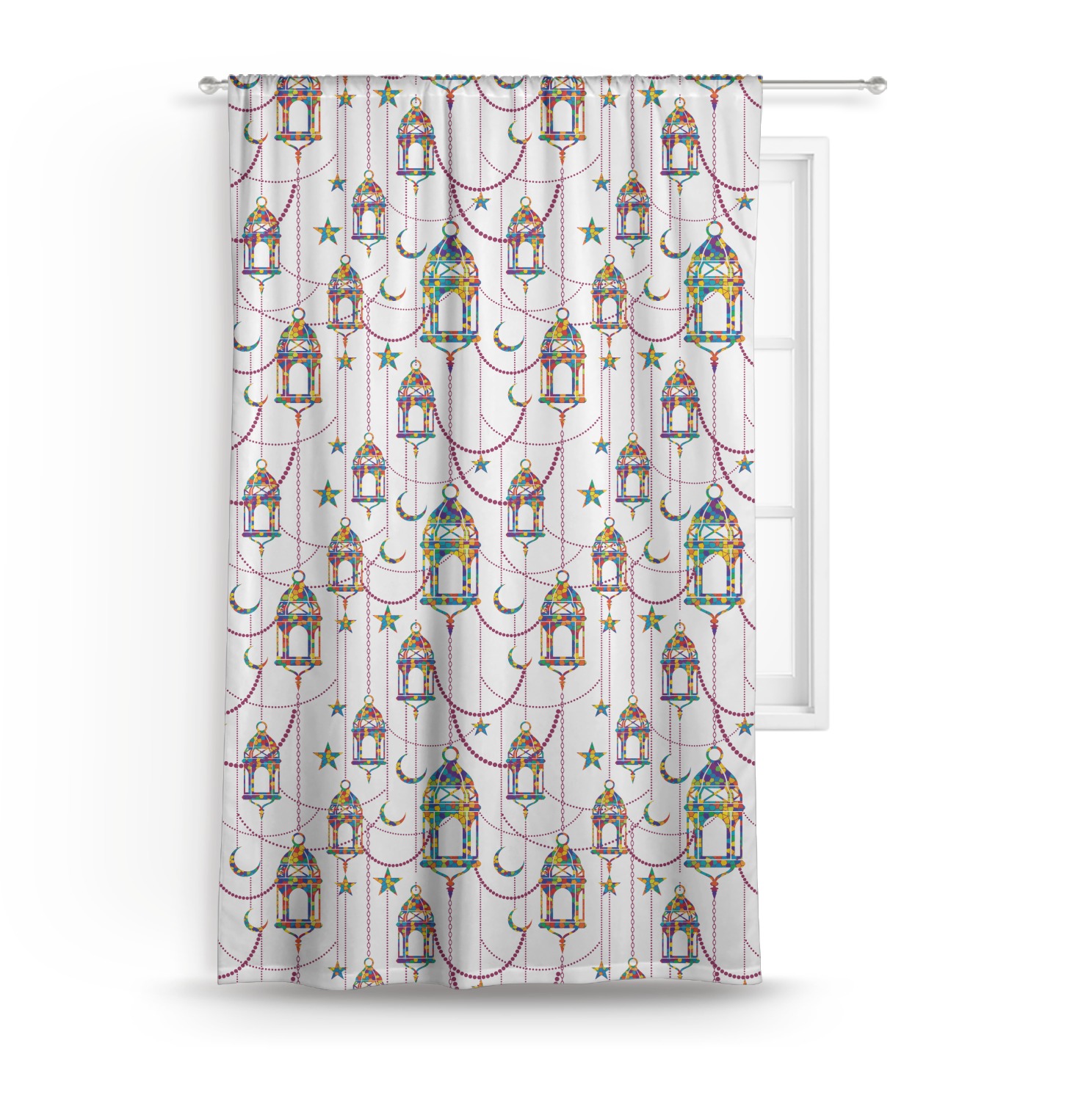 The design consists of brightly colored mosaic style lanterns with stars and moons hanging like chandeliers from chains. You'll find all sorts of colors including blue, green, yellow, and purple. We chose not to personalize the main design, however the default layout has your personalization at the bottom.