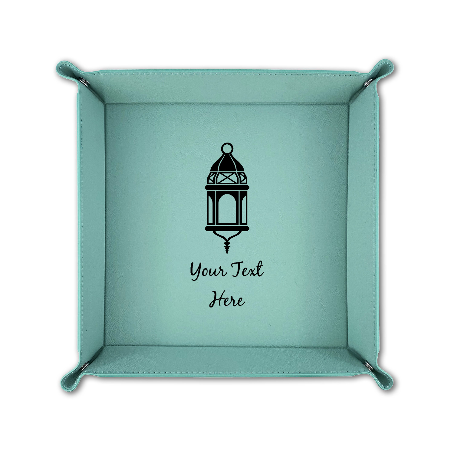 The design consists of brightly colored mosaic style lanterns with stars and moons hanging like chandeliers from chains. You'll find all sorts of colors including blue, green, yellow, and purple. We chose not to personalize the main design, however the default layout has your personalization at the bottom.
