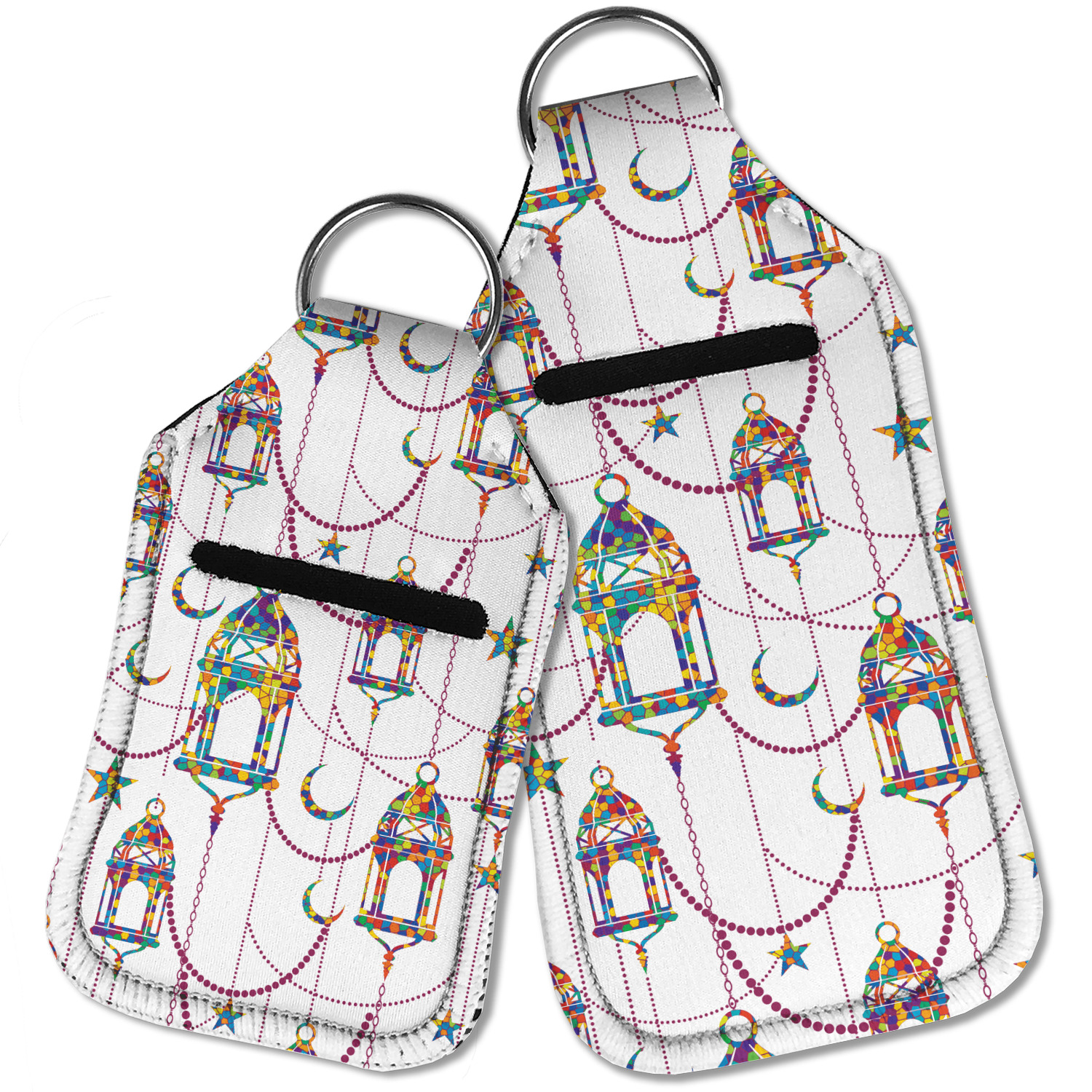 Each hand sanitizer holder comes with its own empty travel-sized, refillable hand sanitizer sure to fit snug in your customized sanitizer case! Our hand sanitizer cases are a durable, yet soft neoprene material sure to last any daily activities or travel agenda. Customize and personalize a hand sanitizer bottle holder with one of our two sizes - small (4.25" x 2.25") or large (5.5" x 2.5"). Each travel sanitizer holder comes with a keyring for attachment on bags, keys, or more!