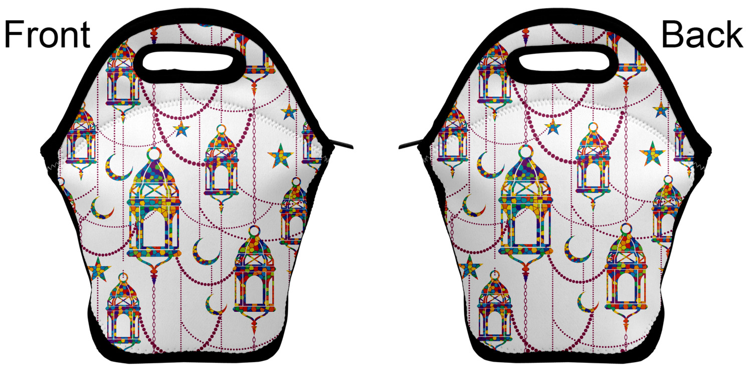 Our personalized lunch bags are made from a strong neoprene, and secure with a zipper closure that lines the top of the bag.The edges of the neoprene are sewn together with a heavy duty stitch, adding to the durability of the bag. The is accompanied by a reinforced handle at its top, for the easy transport of your lunch. We display your personalization across both the front and back of this neoprene lunch bag, while the remaining sides are a sleek black in color. Each bag measures at 13.5 inches tall, and 11.5 inches wide.