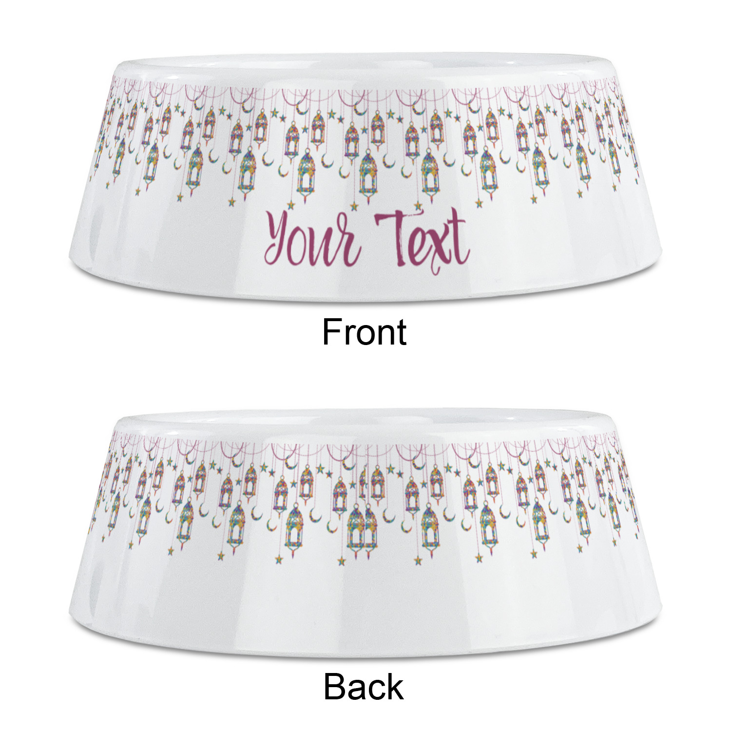 The design consists of brightly colored mosaic style lanterns with stars and moons hanging like chandeliers from chains. You'll find all sorts of colors including blue, green, yellow, and purple. We chose not to personalize the main design, however the default layout has your personalization at the bottom.