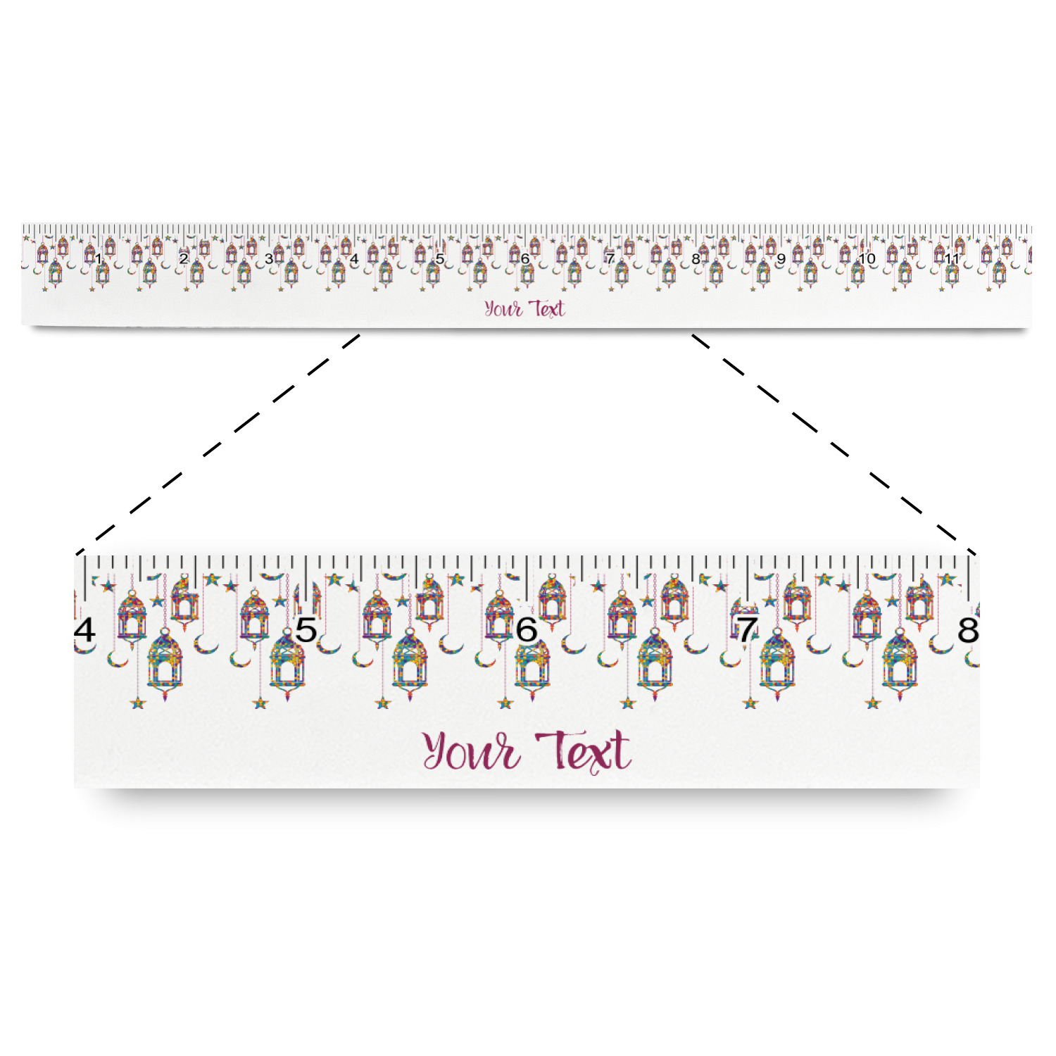 The design consists of brightly colored mosaic style lanterns with stars and moons hanging like chandeliers from chains. You'll find all sorts of colors including blue, green, yellow, and purple. We chose not to personalize the main design, however the default layout has your personalization at the bottom.