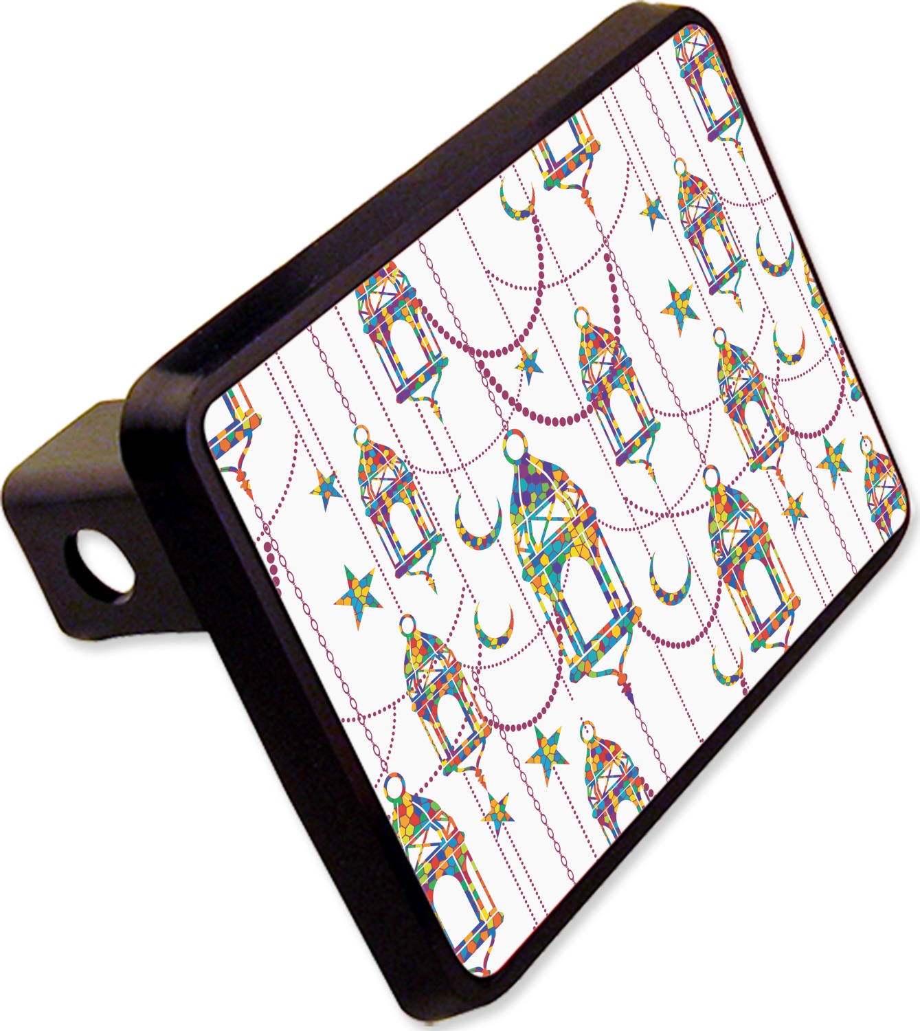 Our receiver hitch covers are molded, durable, and available in a size that fits 2in., square receiver holes. This model is best suited for a Class 3 or Class 4 hitch, but please consult our hitch sizing guide to make an informed purchase. We print your design on the surface of the rectangular cover, while the rest of the cover is a sleek, black color. The design's vibrancy will last up to 2 years in harsh sunlight. Designed for easy attachment, the cover slides easily into your trailer hitch and can be secured using a pin (not included).