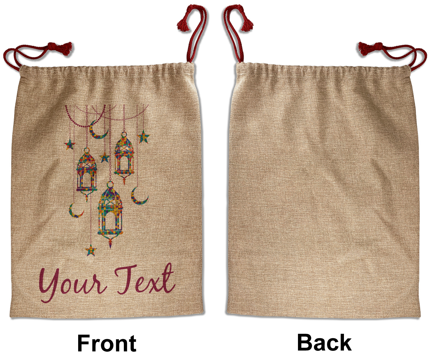 Our Santa sacks print your design on the burlap material giving it a nice rustic, natural design! The burlap material is also machine washable and wrinkle-free, so feel free to fold and store out Santa bags until the next time you need it! Secure your gifts with our red accent drawstring ties at the top of the sack so the mystery of your gift stays a surprise until Christmas day. We offer two types of printing- one side partial print or double-sided partial printing. Design and personalize your own Santa sack in time for the holidays!