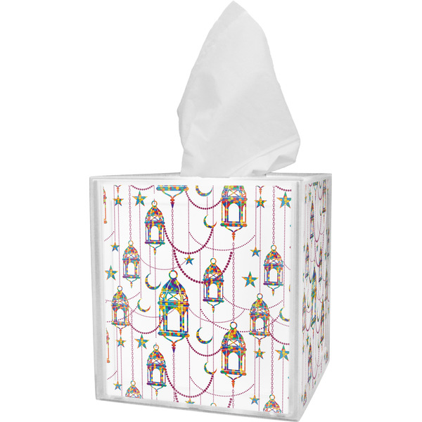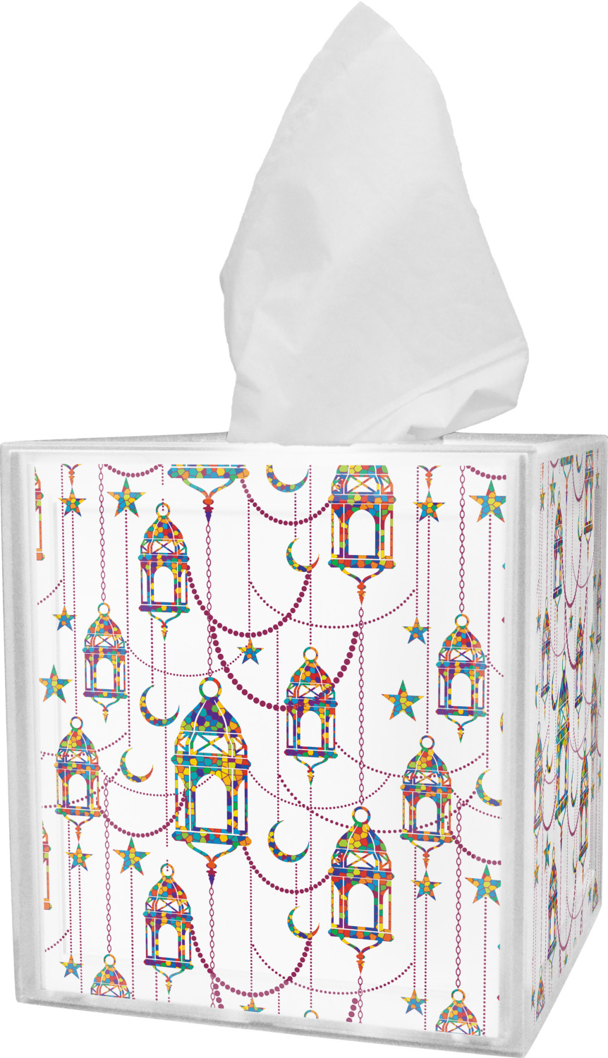 These tissue holders are built from durable acrylic and display your unique personalization on fine-quality vinyl inserts placed within the four sides and top. The box features two pieces, allowing you to easily switch out tissue boxes. On the sides, youll find ridges that ensure the top and base fit securely in place. The bottom of these tissue box holders has four, rubber, non-slip pads to prevent the box from scuffing any surface you decide to display it on. Each box can fit a standard 5 by 5-inch box of tissues.