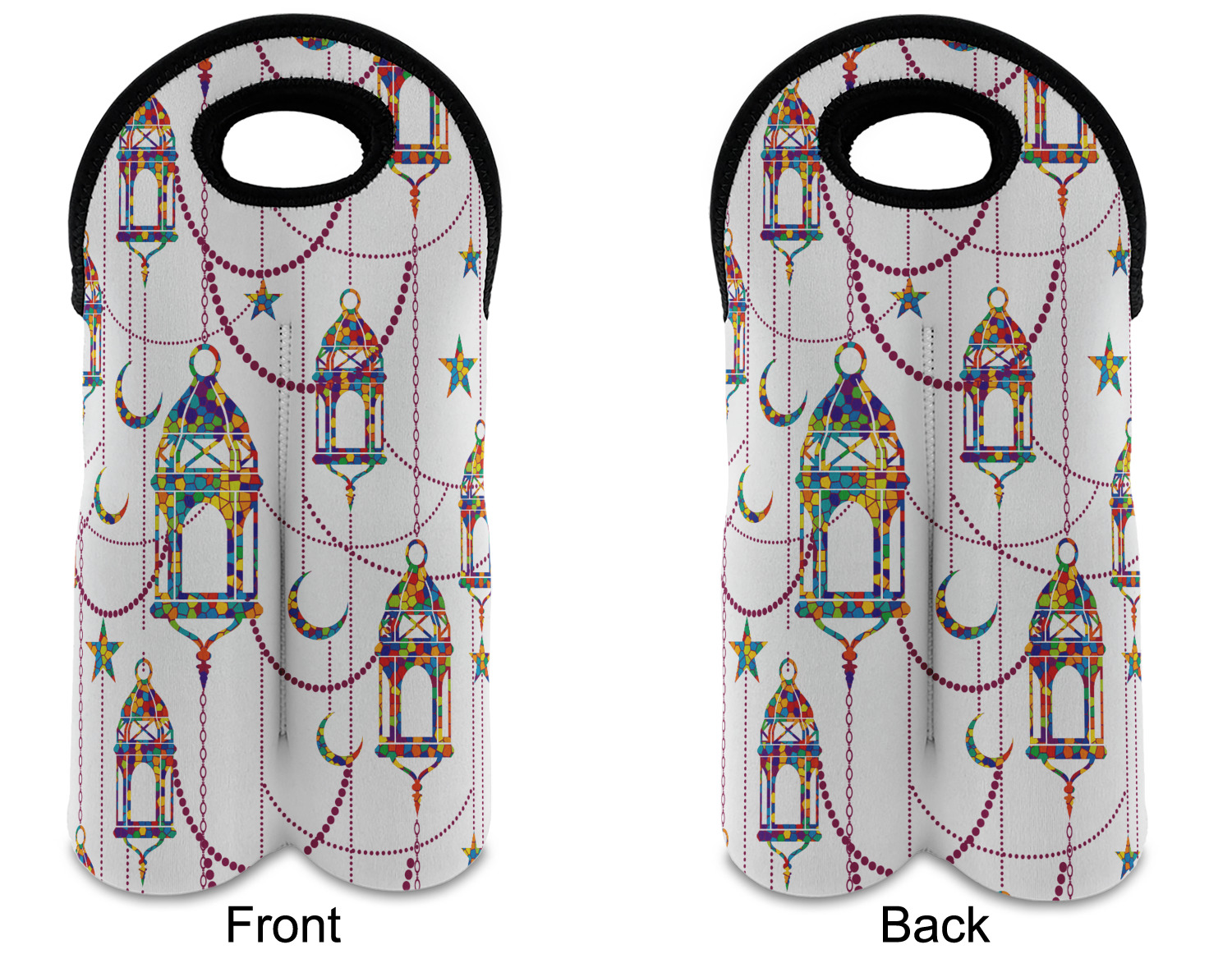 These tote bags are insulated to keep the bottles cold and have a stitched separation down the middle and double handles to keep the two bottles safe and secure during travels.