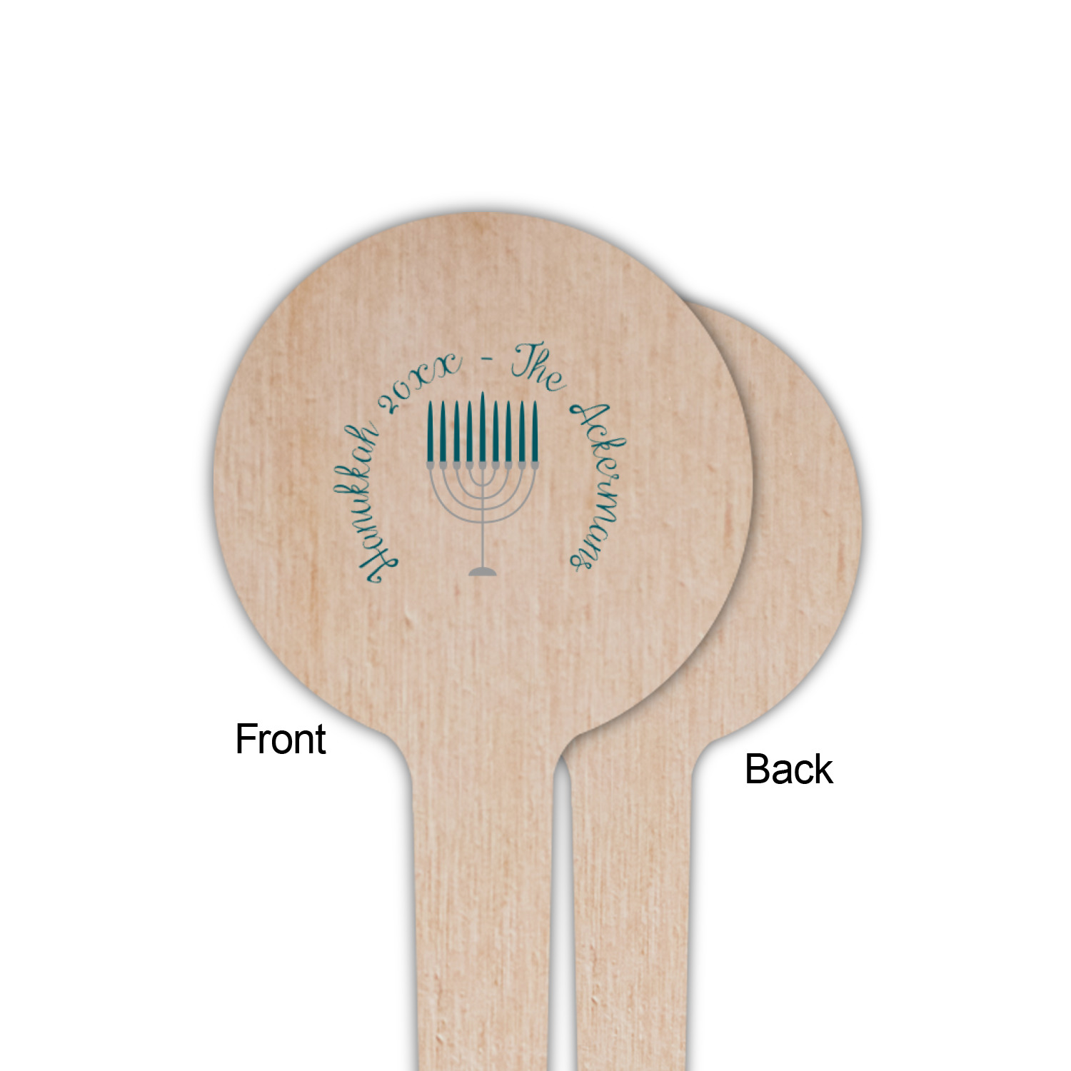 The design is a beautiful set of different shades of teal. You will see three different patterns used throughout this design. One with stripes, olive branches, and stars of David, one with menoras, and the last with doves, menoras, olive branches, and stars of David. The main design has a tall frame with your personalization and a menora graphic in the middle.