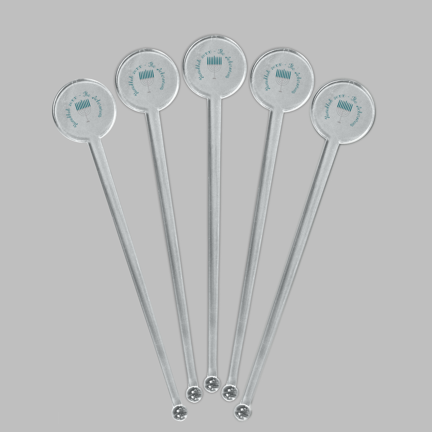 The design is a beautiful set of different shades of teal. You will see three different patterns used throughout this design. One with stripes, olive branches, and stars of David, one with menoras, and the last with doves, menoras, olive branches, and stars of David. The main design has a tall frame with your personalization and a menora graphic in the middle.