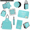 The design is a beautiful set of different shades of teal. You will see three different patterns used throughout this design. One with stripes, olive branches, and stars of David, one with menoras, and the last with doves, menoras, olive branches, and stars of David. The main design has a tall frame with your personalization and a menora graphic in the middle.