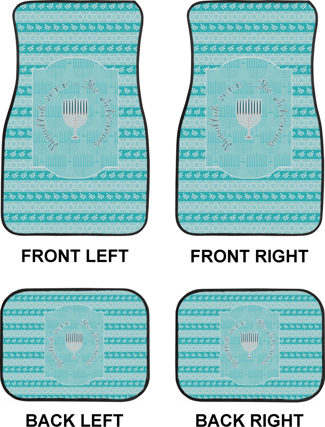We craft our auto floor mats mats from polyester, apply a black finish to the edges, and lined at the bottom to prevent slippage. These mats protect your floors from grass, mud, and any accidental spills. We display your personalized design on the front face of each mat. The sizes of these car floor liners are standardized to provide a versatile fit for all vehicles. The front rows car mats measure at 17 by 26.5 inches, while the back rows measure at 17 by 13 inches. We sell three packages of car floor mats. You can purchase a pair of front row car mats, a pair of back row car mats, or a set of front row and back row car mats. To make an informed purchase, we recommend measuring the surface area of your car floors.