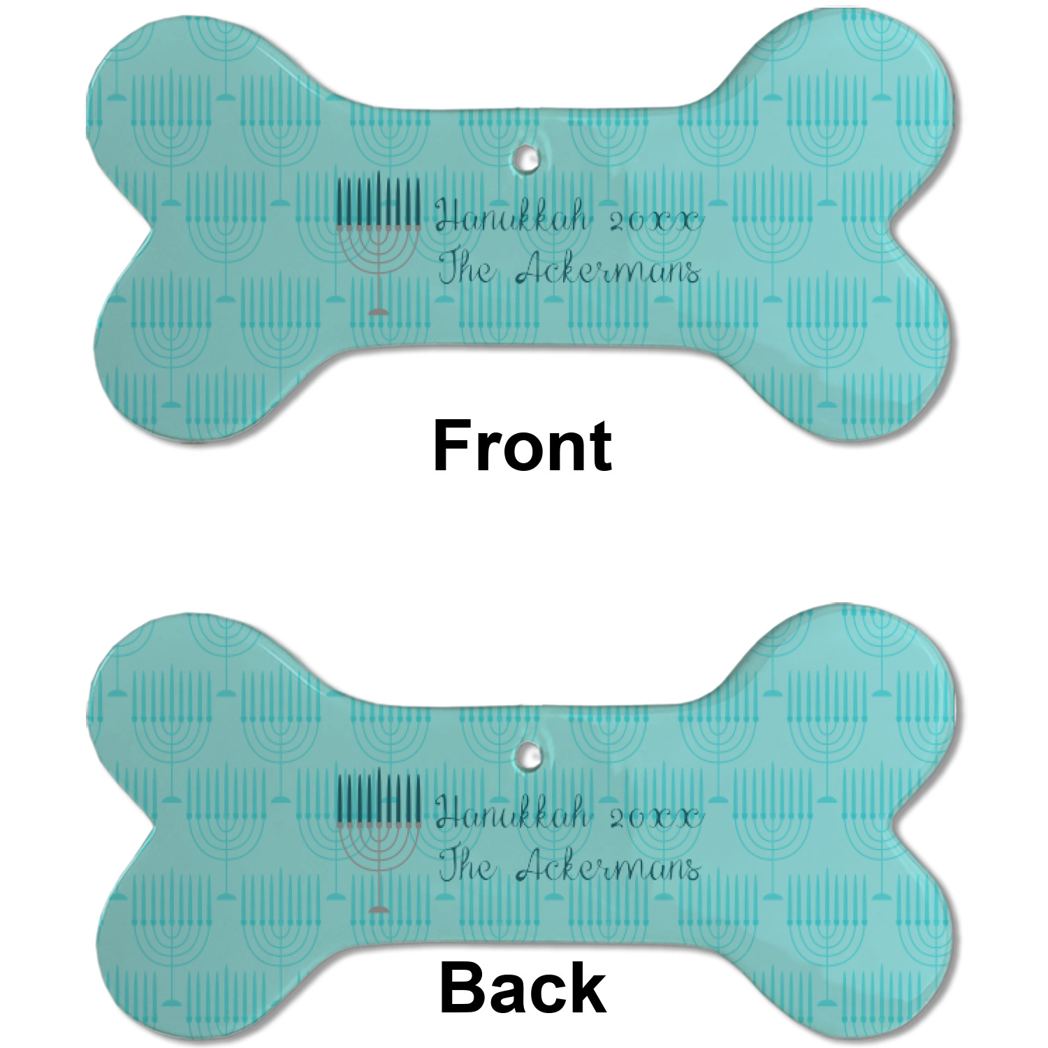 Our dog Christmas ornaments are a ceramic material with a bone-shaped structure hung horizontally. We offer two printing styles to personalize your furry friend's ornament! Choose a one-sided printing, perfect for wall decor, memorial accessory, or doghouse nameplate! Create a double-sided ornament perfect for adorning the Christmas tree. Each dog bone ornament is approximately 4.75" x 2.25" and is printed here in the USA.