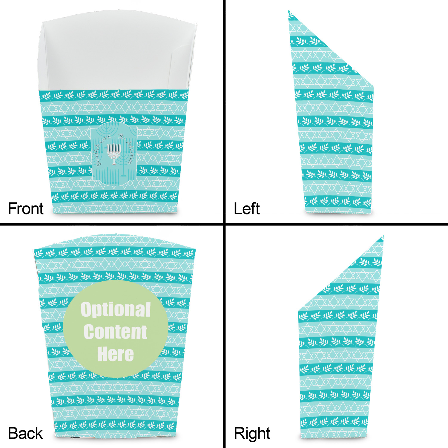 These favor boxes are printed in full color on quality cardstock - so coordinating the french fry favor boxes to match your event's themes or colors should be a breeze. You can upload your own design including artwork, logos or photos