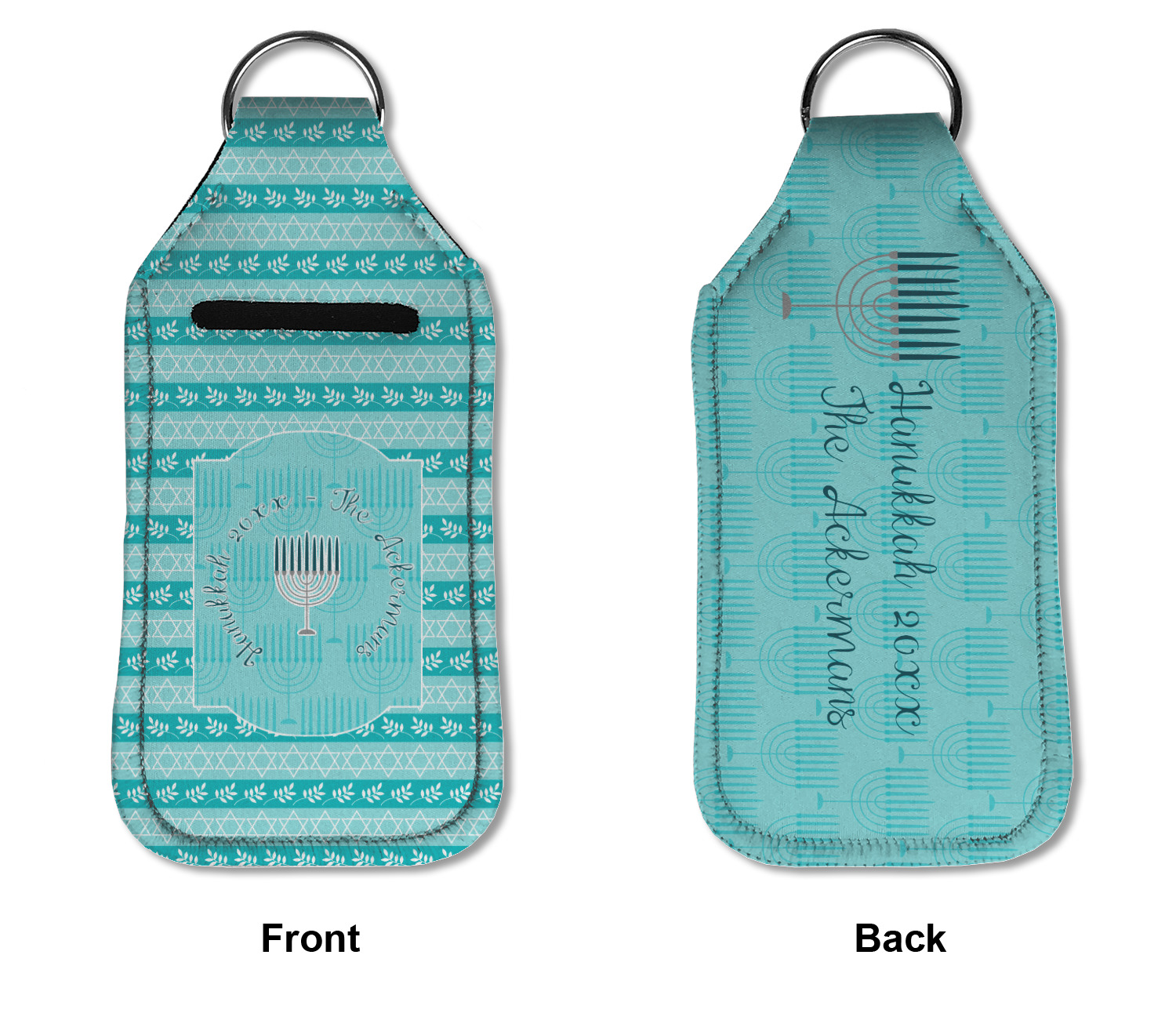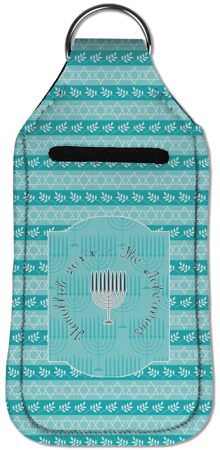 Each hand sanitizer holder comes with its own empty travel-sized, refillable hand sanitizer sure to fit snug in your customized sanitizer case! Our hand sanitizer cases are a durable, yet soft neoprene material sure to last any daily activities or travel agenda. Customize and personalize a hand sanitizer bottle holder with one of our two sizes - small (4.25" x 2.25") or large (5.5" x 2.5"). Each travel sanitizer holder comes with a keyring for attachment on bags, keys, or more!