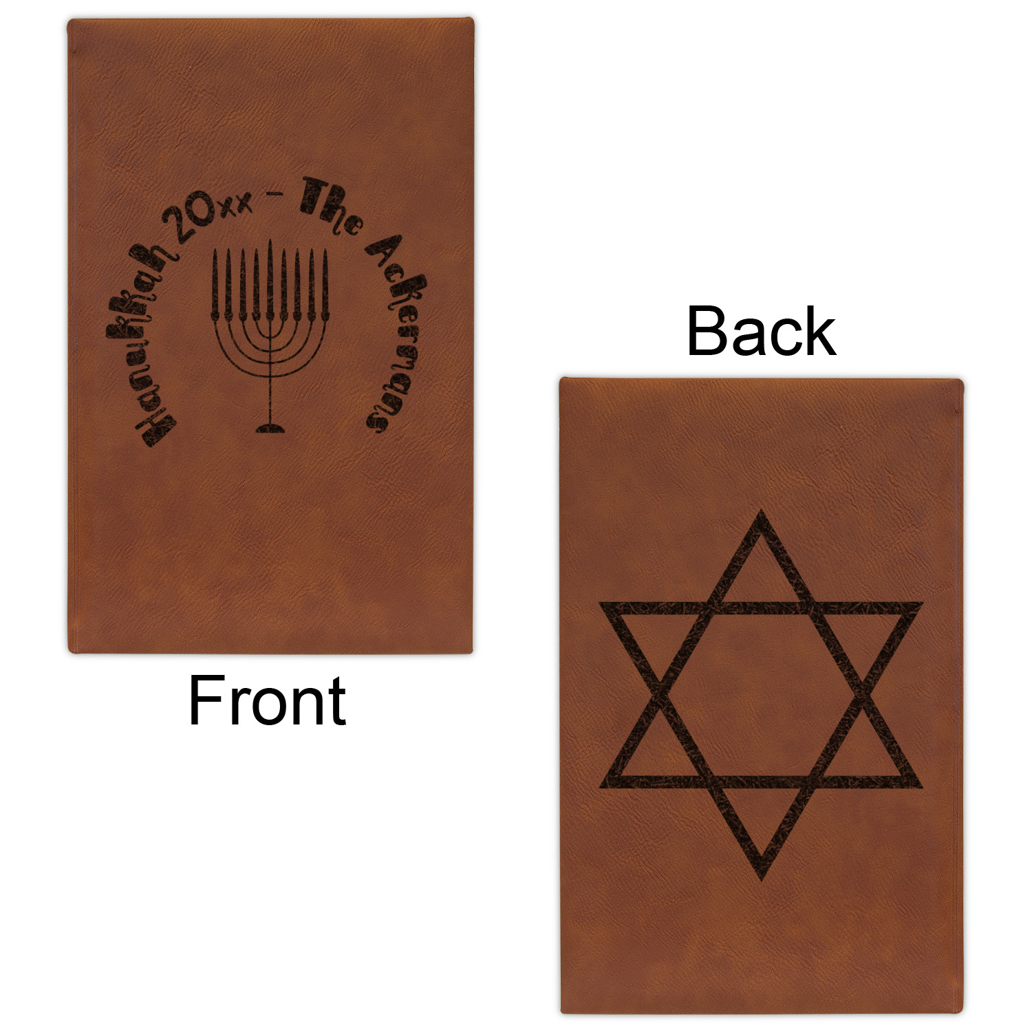 The faux leather covers are a rich cognac / rawhide color and can be customized with your design. From a simple name or monogram or a logo to a detailed mandala - the choice for customization & personalization is truly yours. Customize one of our designs or upload your own.