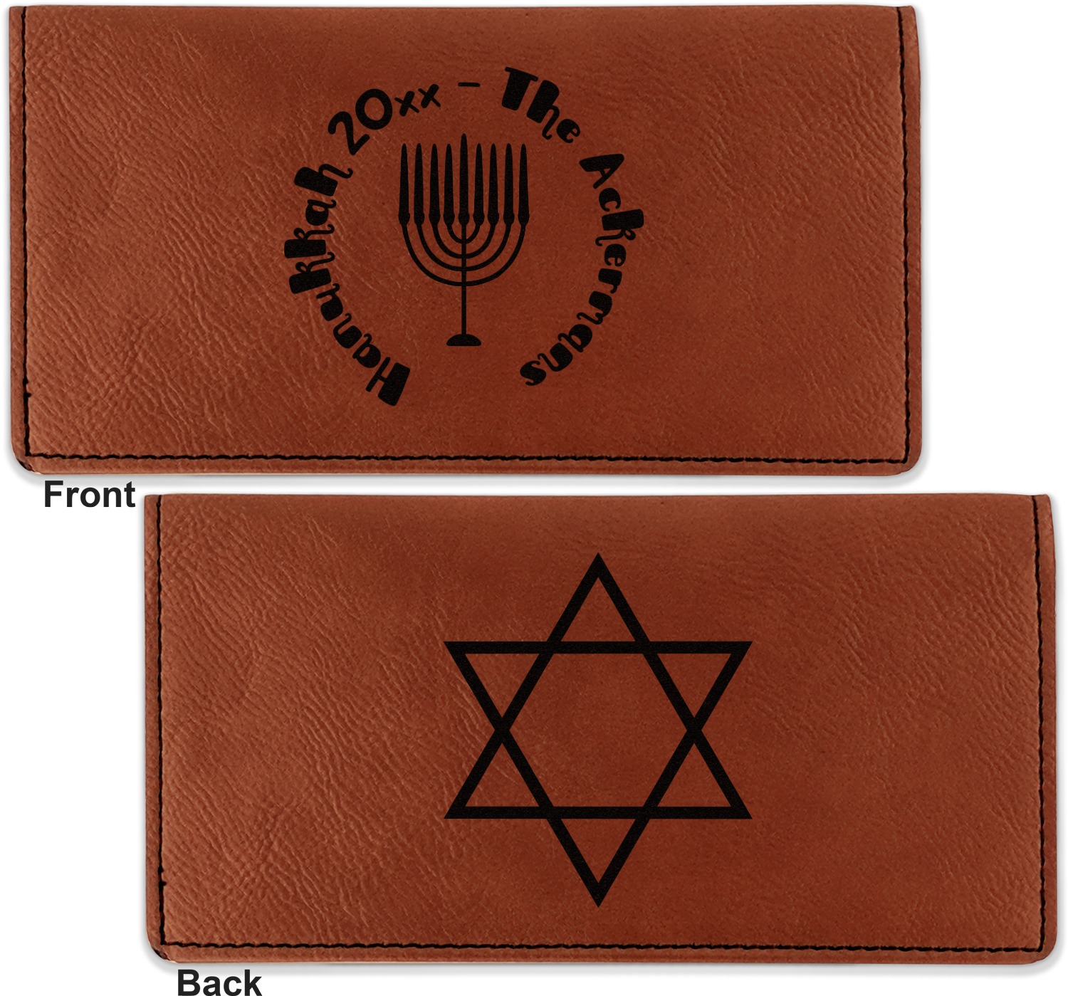 Go into our design center to start personalizing. Your checkbook cover will be laser engraved, making the graphic or text a black color. Choose a fun saying, monogram, or font to go on your checkbook cover. You have the opportunity to do it double or single sided.