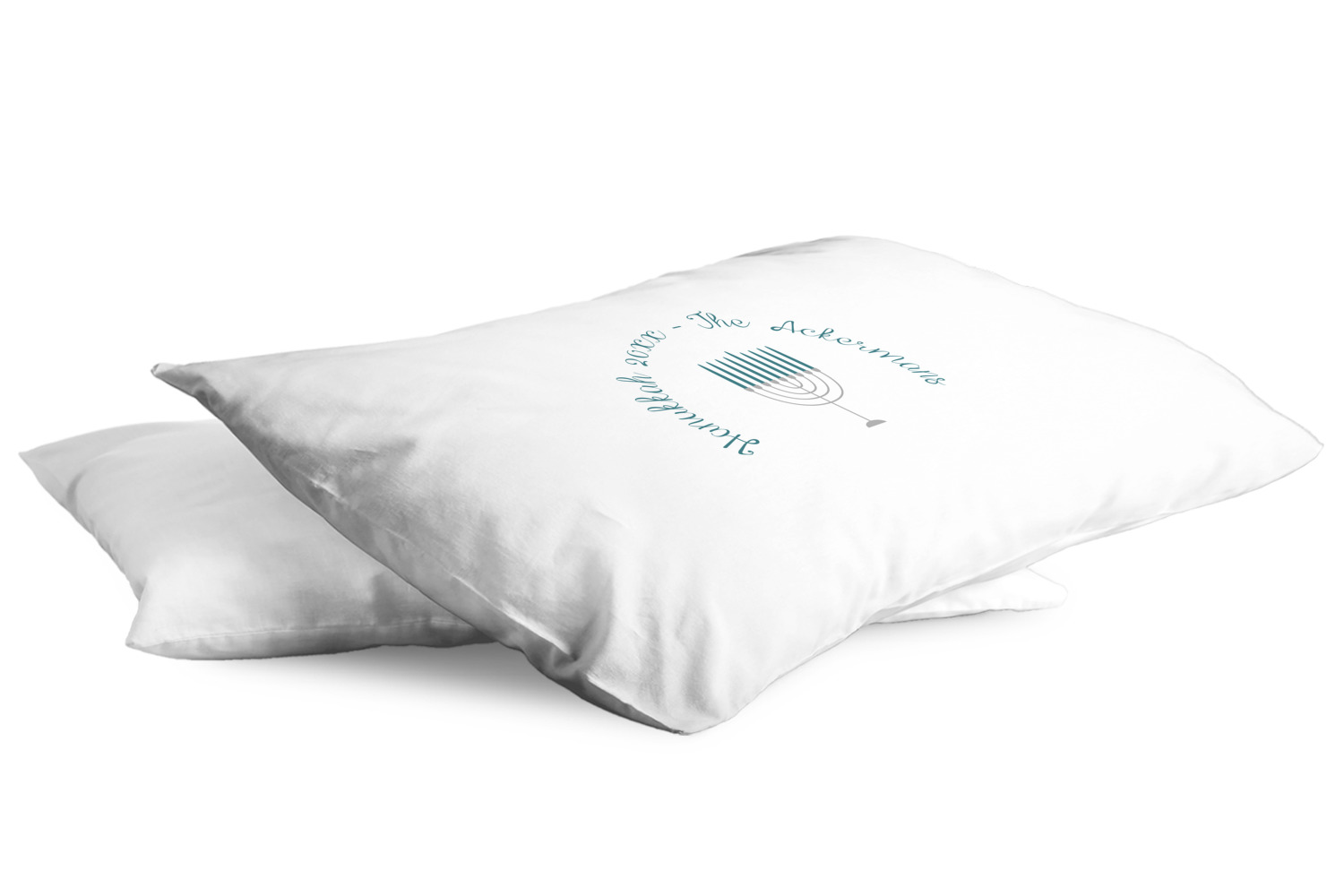 The design is a beautiful set of different shades of teal. You will see three different patterns used throughout this design. One with stripes, olive branches, and stars of David, one with menoras, and the last with doves, menoras, olive branches, and stars of David. The main design has a tall frame with your personalization and a menora graphic in the middle.