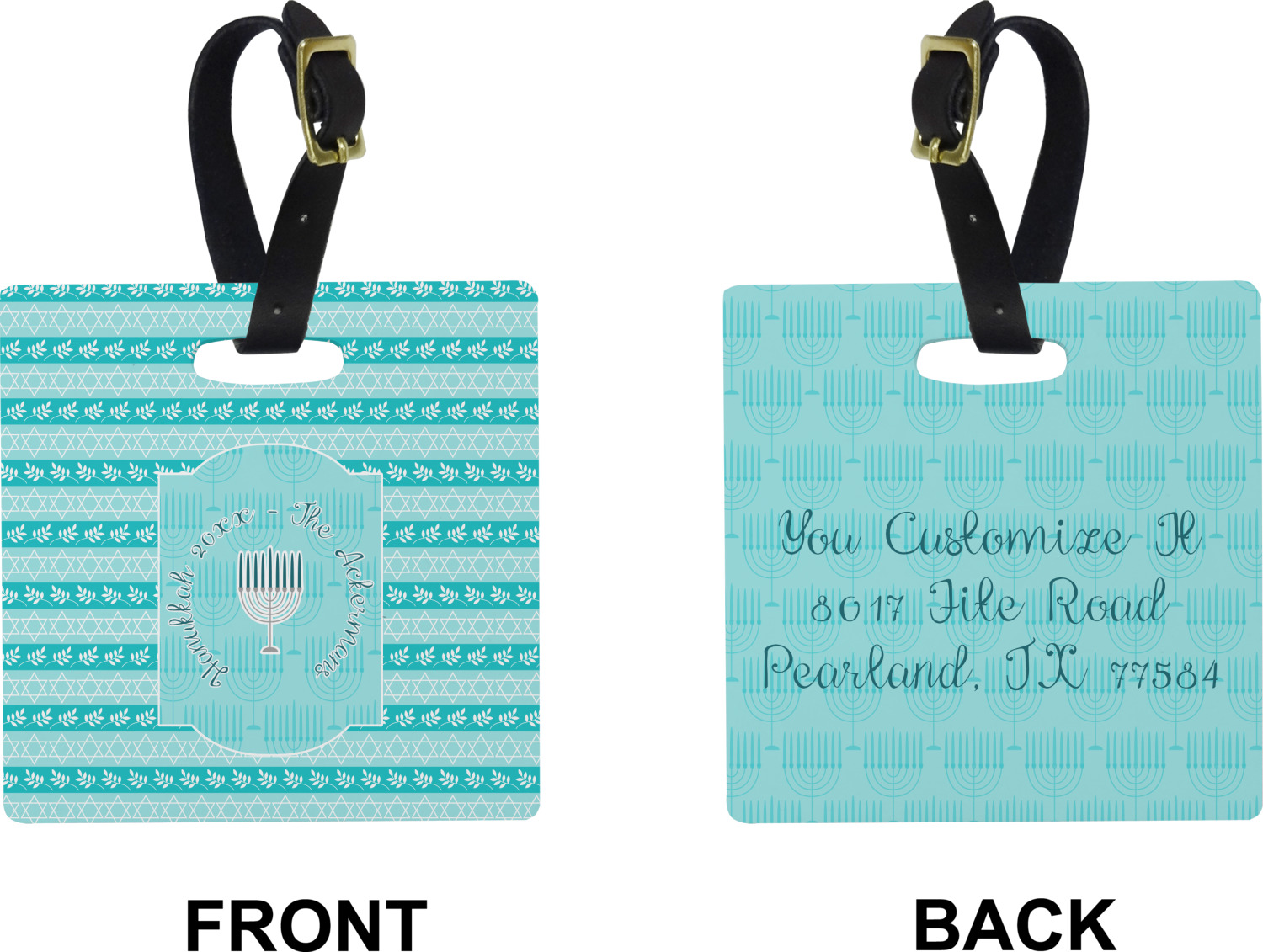 These cute luggage tags are made of a fiber-reinforced, UV-resistant plastic, making them waterproof and durable enough for both everyday use and the rugged adventures of any traveler! A leather strap with holes and a buckle is included with your purchase and can be used to attach your custom luggage tag to any suitcase, backpack, or duffel bag. You can design these travel tags as you wish; your customization will be displayed across the front, while the back will show as little or as much personal information as you want.