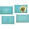 The design is a beautiful set of different shades of teal. You will see three different patterns used throughout this design. One with stripes, olive branches, and stars of David, one with menoras, and the last with doves, menoras, olive branches, and stars of David. The main design has a tall frame with your personalization and a menora graphic in the middle.