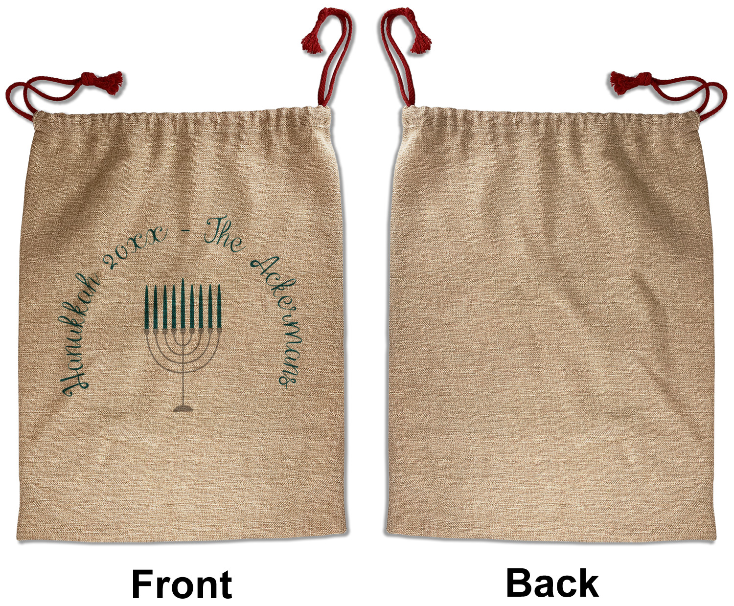 Our Santa sacks print your design on the burlap material giving it a nice rustic, natural design! The burlap material is also machine washable and wrinkle-free, so feel free to fold and store out Santa bags until the next time you need it! Secure your gifts with our red accent drawstring ties at the top of the sack so the mystery of your gift stays a surprise until Christmas day. We offer two types of printing- one side partial print or double-sided partial printing. Design and personalize your own Santa sack in time for the holidays!