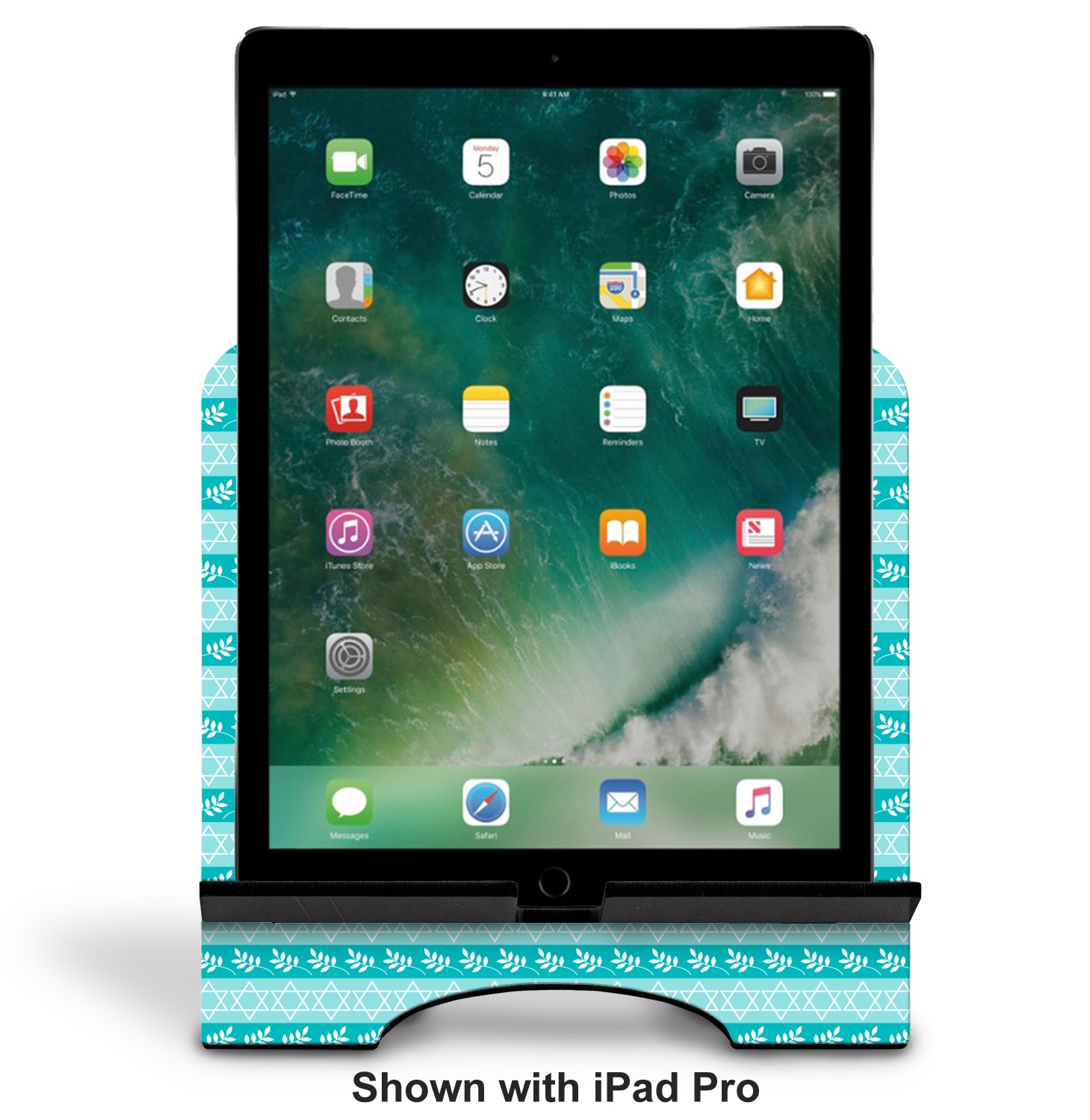 The stand is comprised of two hardboard pieces that fit snugly together and stabilize one another. The bottom part of the iPad stand supports your tablet, and has space for your tablets charger while in use. At 9.25" x 11.5", this tablet mount can support a device between the sizes of the iPad Pro and the iPad Mini 2. The uppermost part of the stand features a decorative, curved edge for a classy, suave appearance. We print your customization atop the face of the stand, in vibrant color. The remaining sides are colored a sleek black.