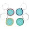 Your wine glass markers are comprised of a circular zinc plate with a 1.25 inch diameter. The zinc plate hangs from a zinc loop, which can be easily secured and removed from the stem of a wine glass. Your customized design is printed onto a 1 inch diameter insert, and then placed into the wine glass charm itself. Though sold in a set of four, you can personalize each charm individually and change the colors of the ring around your design, depending on your needs.