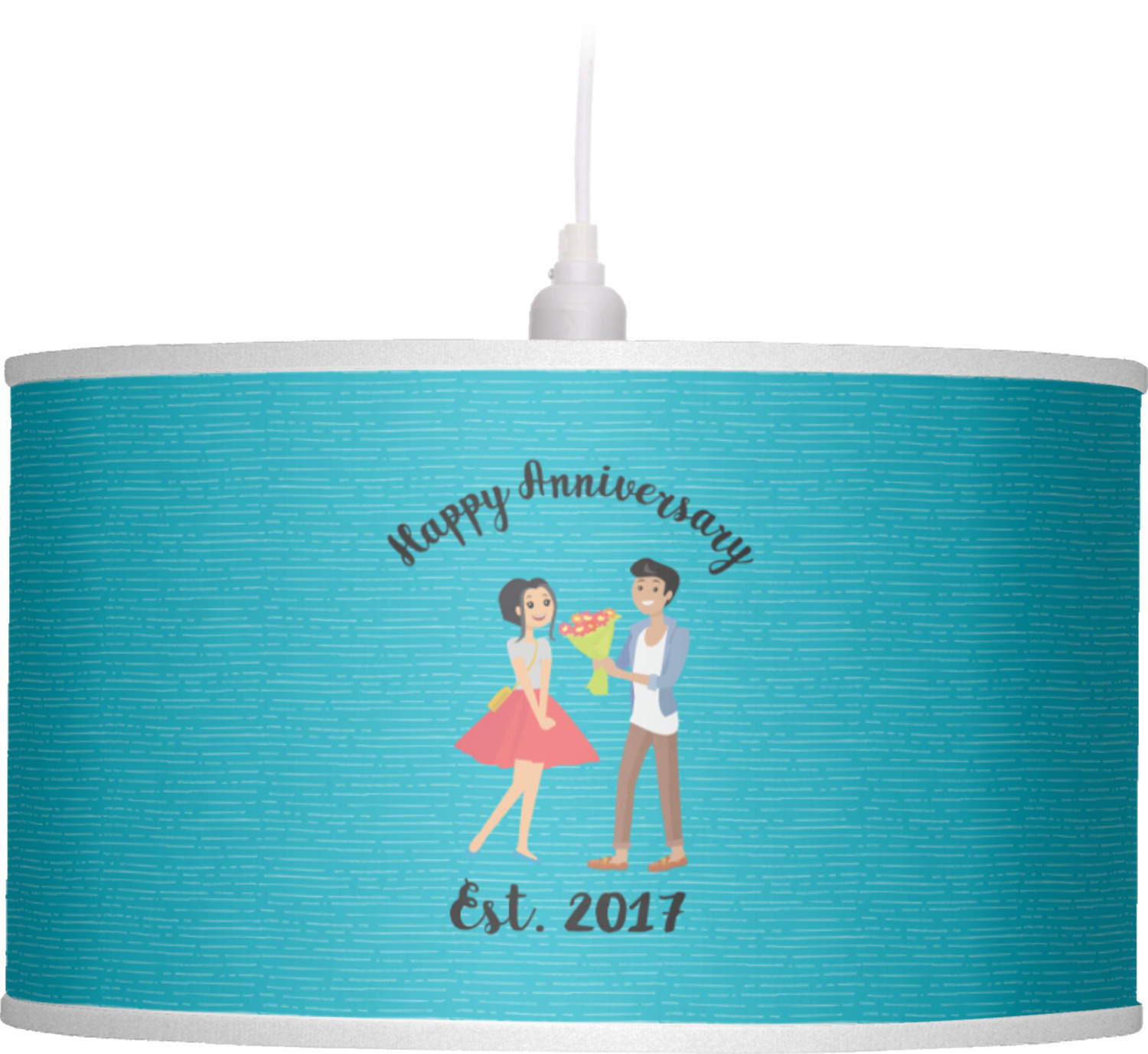 These pendant lampshades are in a cylindrical, drum shape. Available in 2 sizes - 16 inch diameter and a height of 10 inches or 12 inch diameter with a height of 8 inches, this lantern pendant light will not go unnoticed in your home. The interior of this light shade is made of flexible, smooth plastic, and the base color of the lamp is white. Your personalization is displayed on the exterior of this custom lampshade. The fabric shades the fabric fully wraps the ring for a sleek look. Your purchase includes a 12 foot long cord that has a convenient on and off switch attached, the cord is black in color with a tasteful cloth covering over the cord to add the sophisticated look to this light fixture. This lamp can fit a 60 or 75 watt light bulb, but the bulb is not included. Please scroll through the images above to learn more about the structure and shaping of this lamp compared to the other ones we offer.