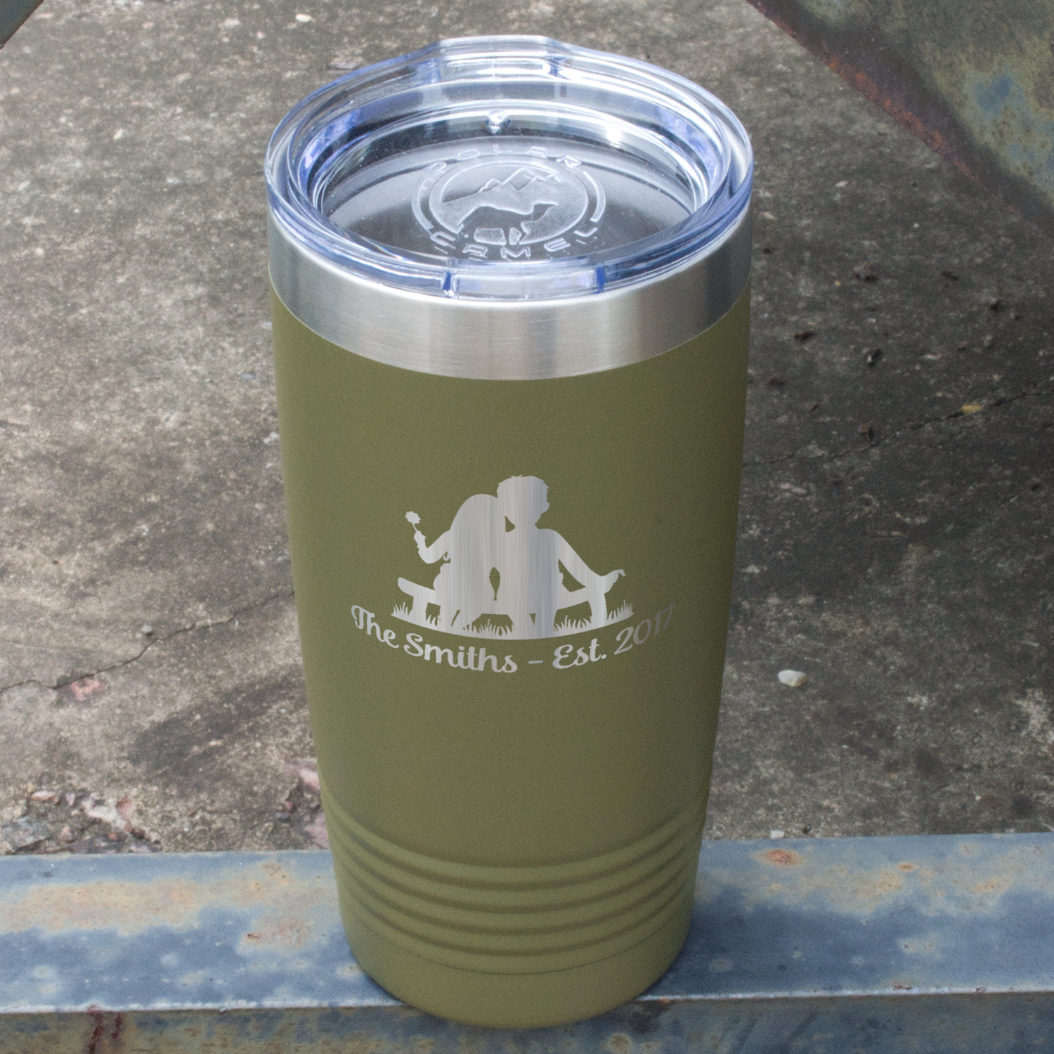 Available in 8 unique colors, these cups are crafted from 18/8 stainless steel and powder coated for their durable finish. With the 8 colors being Black, Pink, Red, Teal, White, Grey, Royal Blue, and Olive Green, you are sure to find a cup to fit your personality. You can chose to engrave on the front or the front and back of the cup. Use our design studio to design your own cup and we laser engrave it for you.