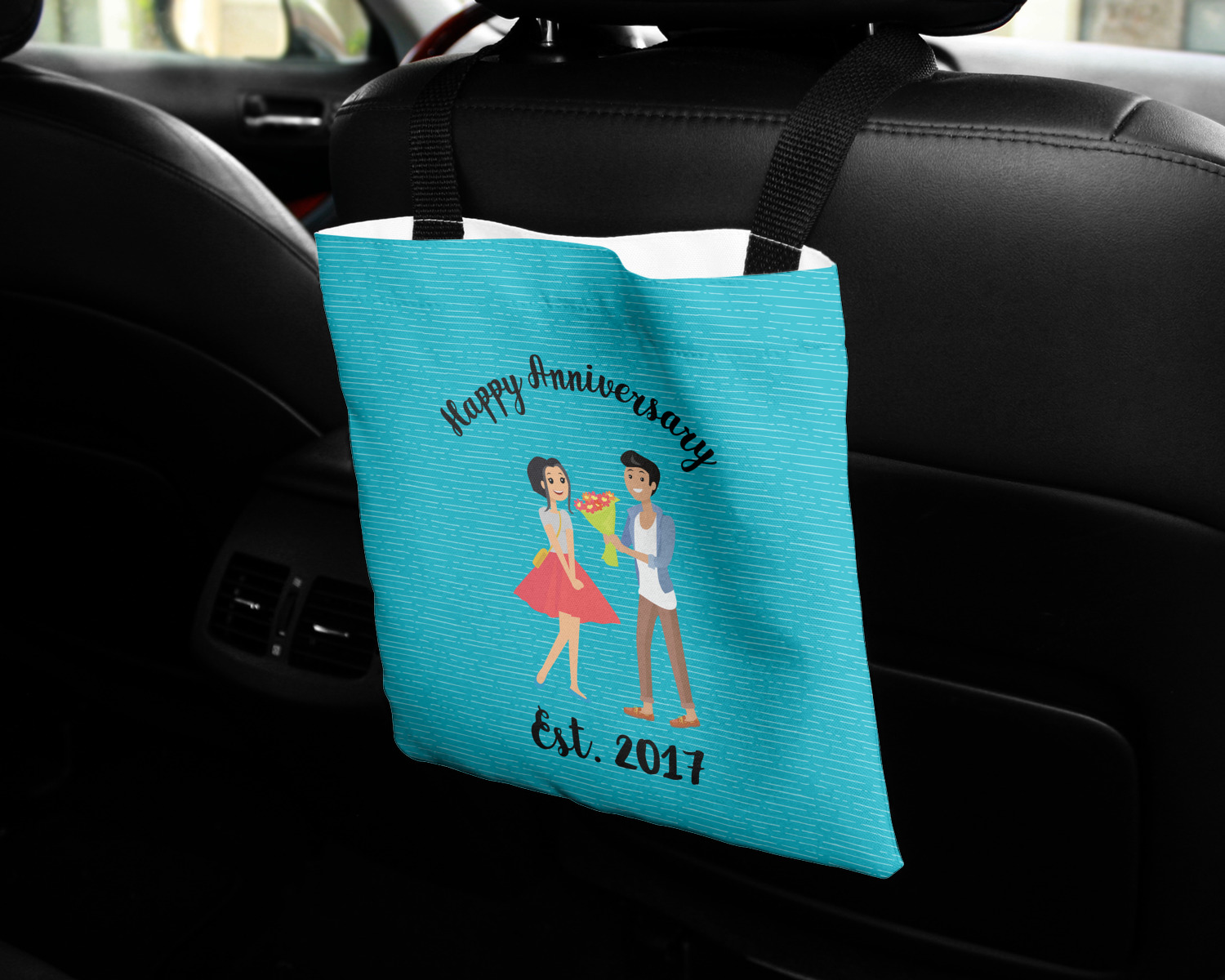 These car back seat organizers are sturdy tote-like bags, fabricated from a robust polyester, and features a single handle on the back side. The strap features an attachable velcro for easy attachment to headrests, grocery carts, car seats, and more. Simply undo the velcro, loop the strap around the headrest, reattach the velcro, and let the organizer hang from the front seat. These car organizers are the perfect means of increasing your backseat's legroom, while storing multiple items in one place for better accessibility. Each car back seat organizer measures at 10 by 10 inches, and features your personalized design printed across its front and back.