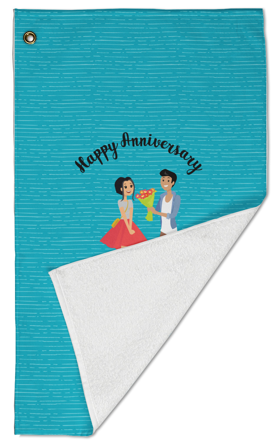 These golf towels are come in 2 sizes: Small: 11"x 18" and Large: 15" x 25" in dimension.