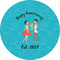 The design has a fun bright teal background with some subtle teal stripes running through. In the middle of the design is where your couple graphic is placed. Easily change the skin tone and hair color of this couple in love. Above and below the couple you can personalize the text to say "happy anniversary" or your names and your anniversary date. The coordinating design uses the couple graphic as a repeating pattern.