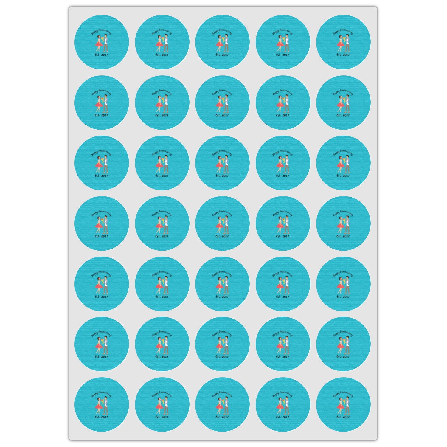 The design has a fun bright teal background with some subtle teal stripes running through. In the middle of the design is where your couple graphic is placed. Easily change the skin tone and hair color of this couple in love. Above and below the couple you can personalize the text to say "happy anniversary" or your names and your anniversary date. The coordinating design uses the couple graphic as a repeating pattern.