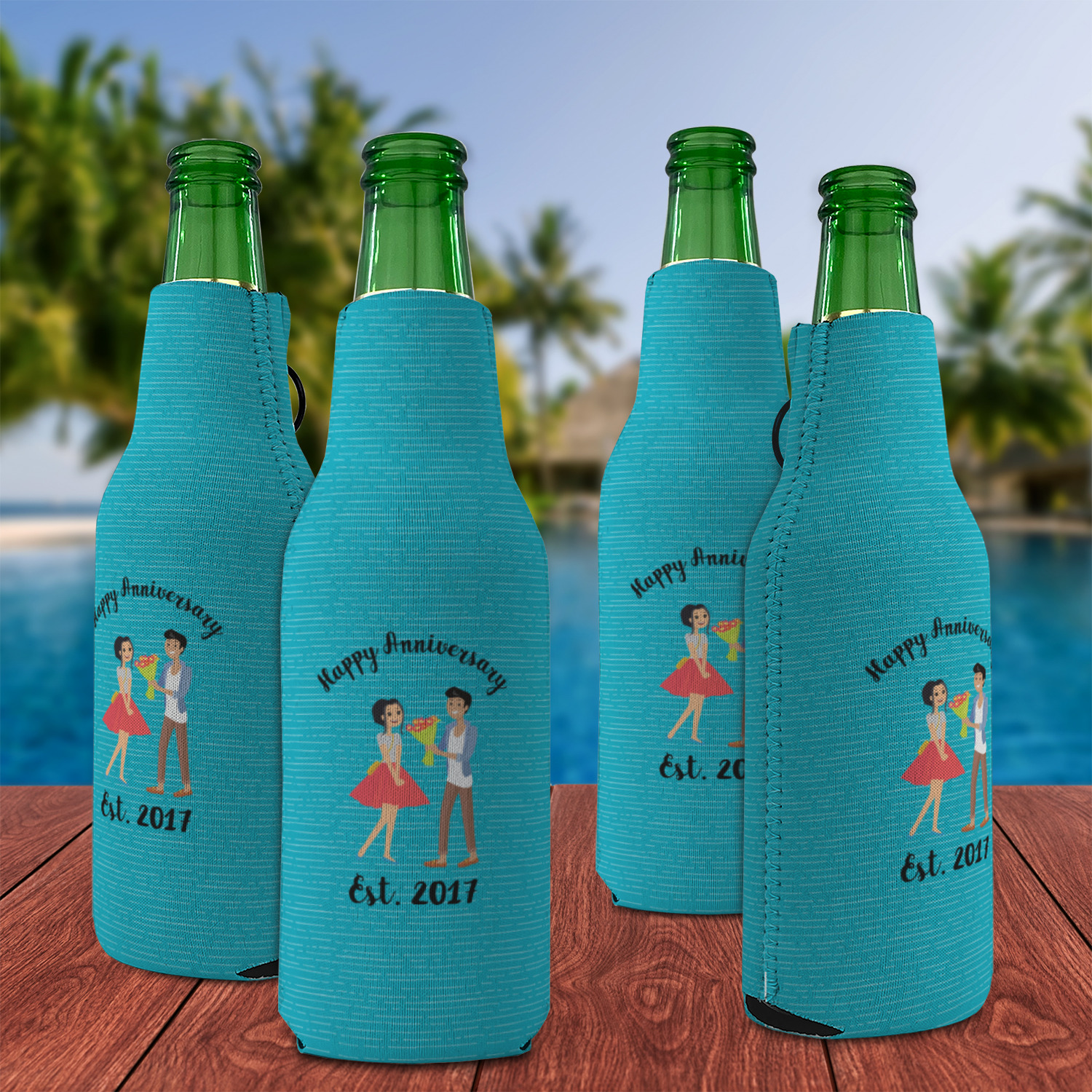 Fabricated from a thick, insulating neoprene, these custom can sleeve keep your drink cold, while proudly displaying your customization on all sides. These can sleeves are designed to fit most 12oz bottles. Available in two types - zipper cooler for insulating the full bottle or the jersey style for sports season. Also available as a single can sleeve or in a set of 4 for you to share with friends and family. For convenient storage, they can also be folded.
