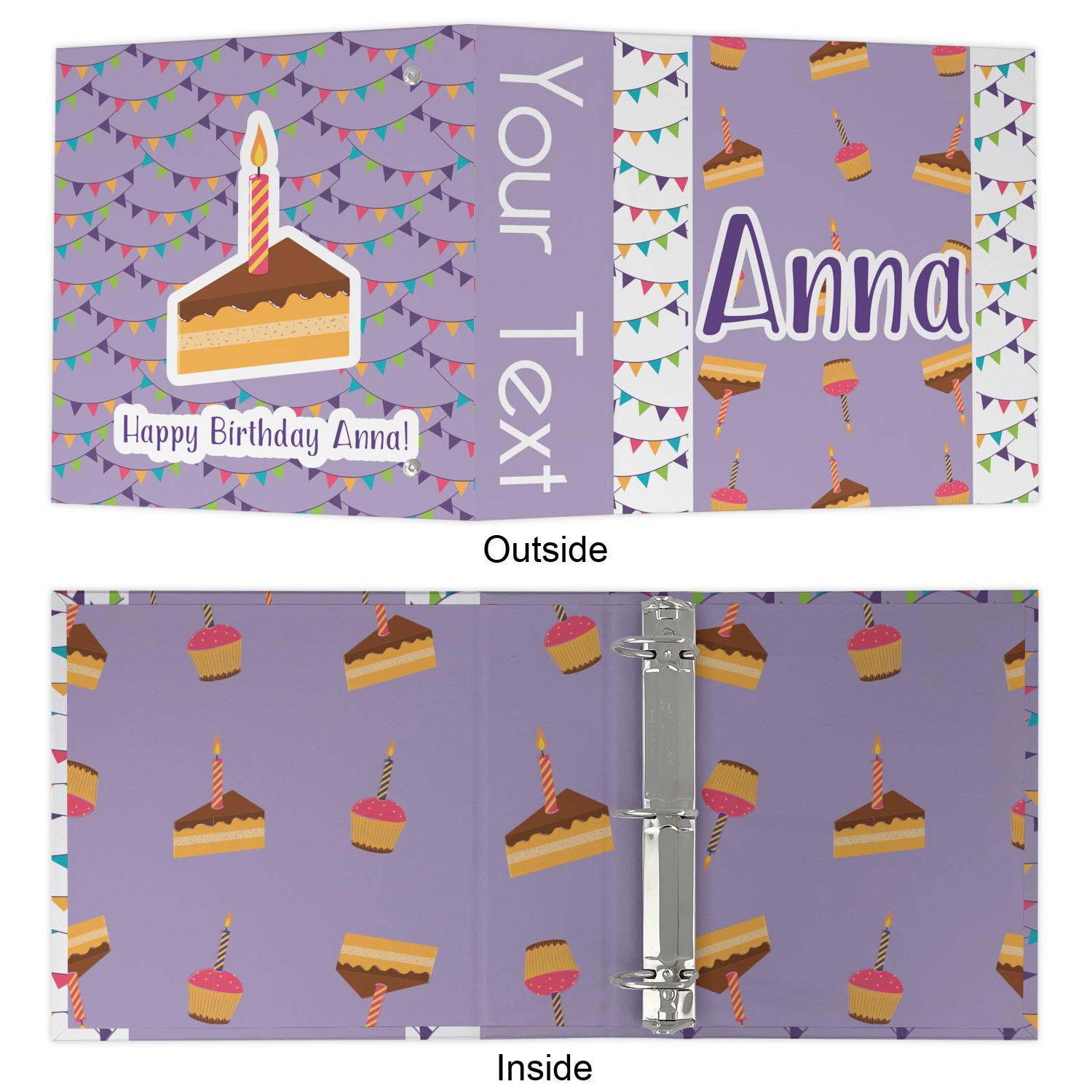 The outside is printed in 3 sections - front cover, spine and back cover - while the inside is printed in a full single print of your choice. The inside boasts a high quality nickel plated binder mechanism with a trigger opening function and is secured to the cardboard binder with posts and screws.