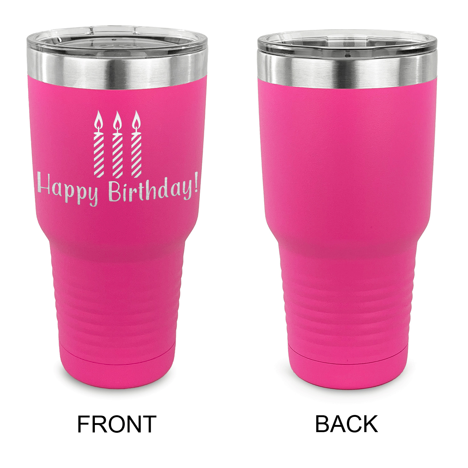 With the 5 colors - Black, Navy, Red, Pink and Coral, you are sure to find a cup to fit your personality. You can chose to engrave on the front or the front and back of the cup. Use our design studio to design your own cup and we laser engrave it for you.
