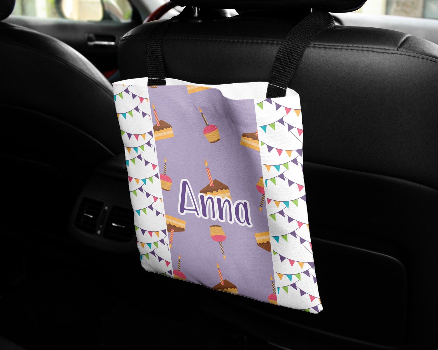 These car back seat organizers are sturdy tote-like bags, fabricated from a robust polyester, and features a single handle on the back side. The strap features an attachable velcro for easy attachment to headrests, grocery carts, car seats, and more. Simply undo the velcro, loop the strap around the headrest, reattach the velcro, and let the organizer hang from the front seat. These car organizers are the perfect means of increasing your backseat's legroom, while storing multiple items in one place for better accessibility. Each car back seat organizer measures at 10 by 10 inches, and features your personalized design printed across its front and back.