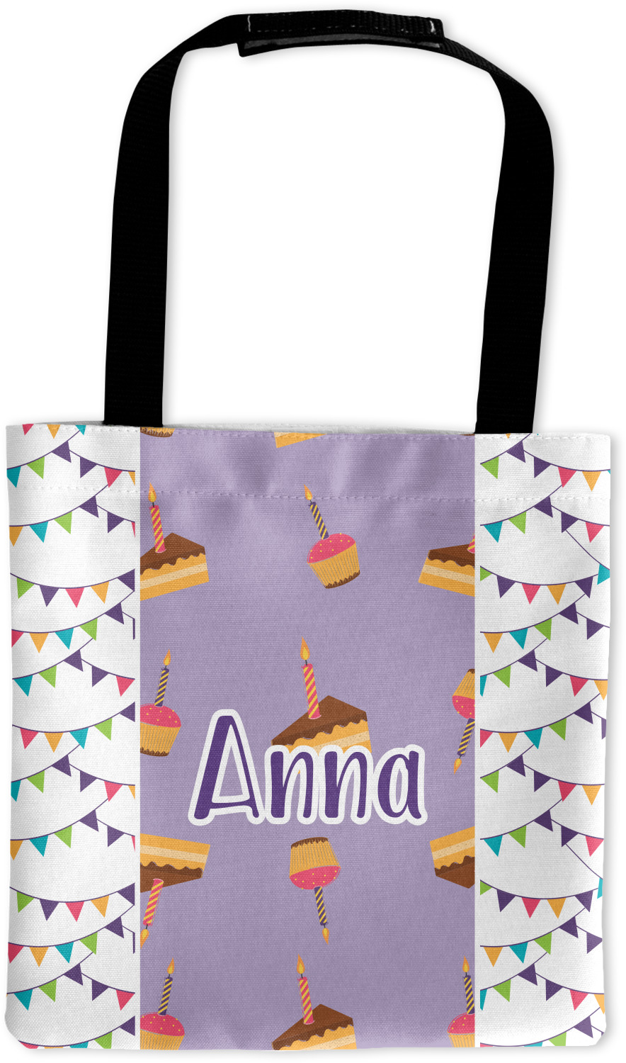 This design is filled with birthday party fun! The triangle birthday banners are a number of bright colors. Throughout the design you will find green, blue, yellow, pink, and mostly purple! The background is a fun lavender to contrast the pink cupcakes and yellow cake slices. This design in particular is divided up into three sections with two different patterns.